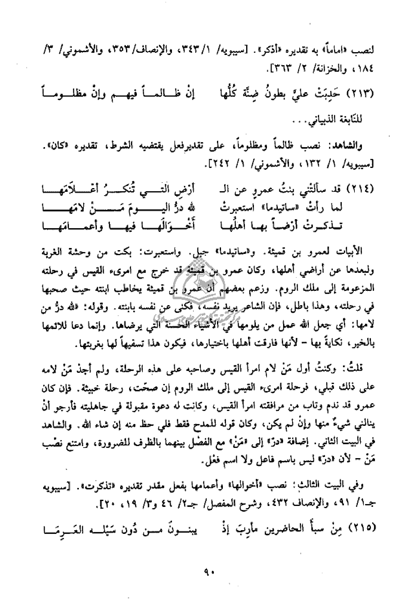 وفي البيت الثالث: نصب «أخوالها» وأعمامها بفعل مقدر تقديره «تذكرت». [سيبويه ج 1/ 91، والإنصاف 432، وشرح المفصل/ ج 2/ 46 و 3/ 19، 20].