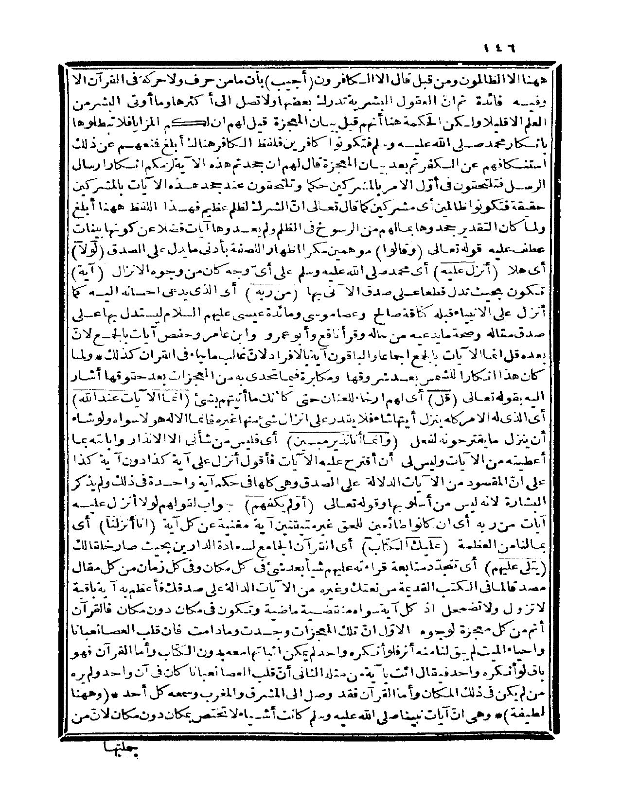 ههنا {إلا الظالمون} ومن قبل قال {إلا الكافرون} ؟ أجيب: بأن ما من حرف ولا حركة في القرآن إلا وفيه فائدة ثم إنّ العقول البشرية تدرك بعضها ولا تصل إلى أكثرها وما أوتي البشر من العلم إلا قليلاً ولكن الحكمة هنا أنهم قبل بيان المعجزة قيل لهم إن لكم المزايا فلا تبطلوها بإنكار محمد صلى الله عليه وسلم فتكونوا كافرين فلفظ الكافر هناك أبلغ فمنعهم عن ذلك استنكافهم عن الكفر، ثم بعد بيان المعجزة قال لهم: إن جحدتم هذه الآية لزمكم إنكار إرسال الرسل فتلتحقون في أوّل الأمر بالمشركين حكماً وتلتحقون عند جحد هذه الآيات بالمشركين حقيقة فتكونوا ظالمين أي: مشركين كما قال تعالى: {إنّ الشرك لظلم عظيم} (لقمان: 13)