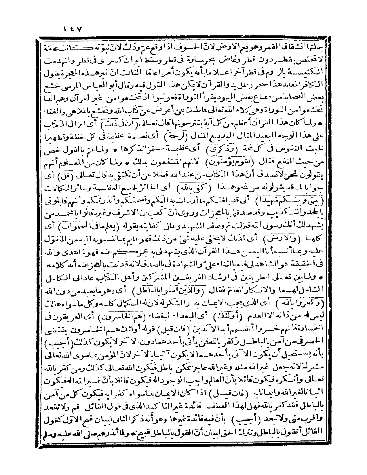فإن قيل: إذا كان الإيمان بما سواه كفراً به فيكون كل من آمن بالباطل فقد كفر بالله فهل لهذا العطف فائدة غير التأكيد الذي في قول القائل قم ولا تقعد وأقرب مني ولا تبعد؟ أجيب: بأنّ فيه فائدة غيرها وهو أنه ذكر الثاني لبيان قبح الأوّل كقول القائل: أتقول بالباطل وتترك الحق لبيان أنّ القول بالباطل قبيح، ولما أنذرهم صلى الله عليه وسلم