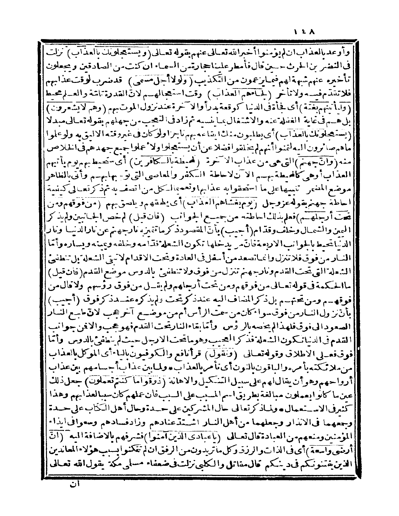 {ويستعجلونك بالعذاب} نزلت في النضر بن الحارث حين قال: فأمطر علينا حجارة من السماء إن كنت من الصادقين ويجعلون تأخيره عنهم شبهة لهم فيما يزعمون من التكذيب {ولولا أجل مسمى} قد ضرب لوقت عذابهم فلا تقدّم فيه ولا تأخر {لجاءهم العذاب} وقت استعجالهم لأنّ القدرة تامّة والعلم محيط {وليأتينهم بغتة} أي: فجأة في الدنيا كوقعة بدر أو الآخرة عند نزول الموت بهم {وهم لا يشعرون} بل هم في غاية الغفلة عنه والاشتغال بما ينسيه، ثم زاد في التعجب من جهلهم بقوله تعالى مبدلاً: