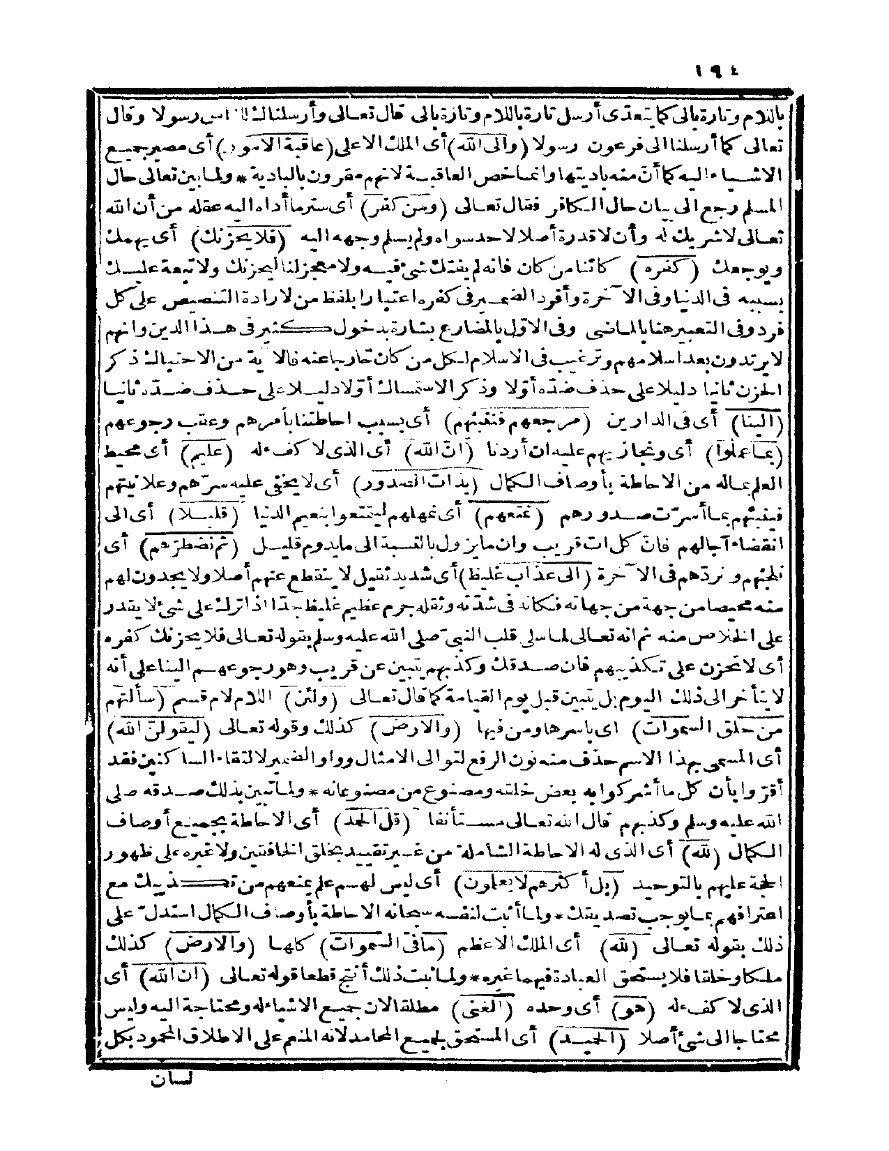 {ومن كفر} أي: ستر ما أداه إليه عقله من أن الله تعالى لا شريك له وأن لا قدرة أصلاً لأحدٍ سواه ولم يسلم وجهه إليه {فلا يحزنك} أي: يهمك ويوجعك {كفره} كائناً من كان، فإنه لم يفتك شيء فيه ولا معجز لنا ليحزنك ولا تبعة عليك بسببه في الدنيا وفي الآخرة، وأفرد الضمير في كفره اعتباراً بلفظ من لإرادة التنصيص على كل فرد، وفي التعبير هنا بالماضي وفي الأوّل بالمضارع بشارة بدخول كثير في هذا الدين وأنهم لا يرتدون بعد إسلامهم، وترغيب في الإسلام لكل من كان خارجاً عنه فالآية من الاحتباك، ذكر الحزن ثانياً دليلاً على حذف ضدّه أوّلاً، وذكر الاستمساك أوّلاً دليلاً على حذف ضدّه ثانياً {إلينا} أي: في الدارين {مرجعهم فننبئهم} أي: بسبب إحاطتنا بأمرهم وعقب رجوعهم {بما عملوا} أي: ونجازيهم عليه إن أردنا {إن الله} أي: الذي لا كفء له {عليم} أي: محيط العلم بما له من الإحاطة بأوصاف الكمال {بذات الصدور} أي: لا يخفى عليه سرّهم وعلانيتهم فينبئهم بما أسرّت صدورهم.
