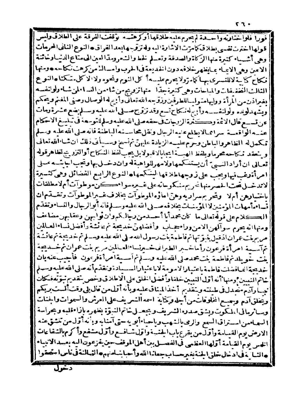 ومنها أنه يحرم سؤالهن إلا من وراء حجاب، وأفضلهن خديجة ثم عائشة، وأفضل نساء العالمين مريم بنت عمران إذ قيل بنبوتها، ثم فاطمة بنت رسول الله صلى الله عليه وسلم ثم خديجة، ثم عائشة، ثم آسية امرأة فرعون، وأما خبر الطبراني: خير نساء العالمين مريم بنت عمران، ثم خديجة بنت خويلد، ثم فاطمة بنت محمد صلى الله عليه وسلم ثم آسية امرأة فرعون فأجيب عنه: بأن خديجة إنما فضلت فاطمة باعتبار الأمومة لا باعتبار السيادة، وتقدم أنه صلى الله عليه وسلم خاتم النبيين.