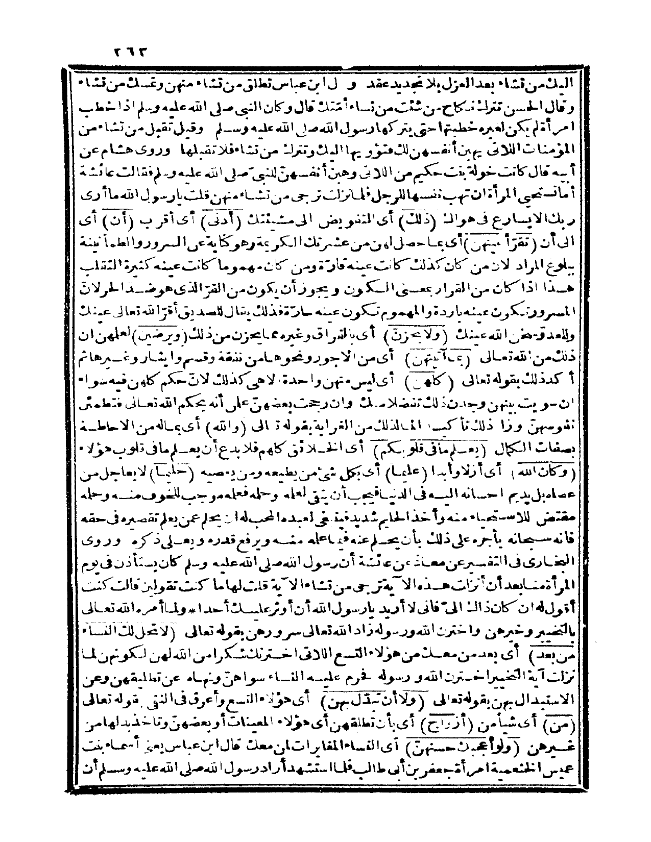 وقال الحسن: تترك نكاح من شئت من نساء أمتك. قال: وكان النبي صلى الله عليه وسلم إذا خطب امرأة لم يكن لغيره خطبتها حتى يتركها رسول الله صلى الله عليه وسلم وقيل: تقبل من تشاء من المؤمنات اللاتي يهبن أنفسهن لك فتؤويها إليك وتترك من تشاء فلا تقبلها، وروى هشام عن أبيه قال: «كانت خولة بنت حكيم من اللاتي وهبن أنفسهن للنبي صلى الله عليه وسلم فقالت عائشة: أما تستحي المرأة أن تهب نفسها للرجل فلما نزلت ترجي من تشاء منهن قلت: يا رسول الله ما أرى ربك إلا يسارع في هواك» {ذلك} أي: التفويض إلى مشيئتك {أدنى} أي: أقرب {أن} أي: إلى أن {تقر أعينهن} أي: بما حصل لهن من عشرتك الكريمة، وهو كناية عن السرور والطمأنينة ببلوغ المراد؛ لأن من كان كذلك كانت عينه قارة، ومن كان مهموماً كانت عينه كثيرة التقلب، هذا إذا كان من القرار بمعنى السكون.