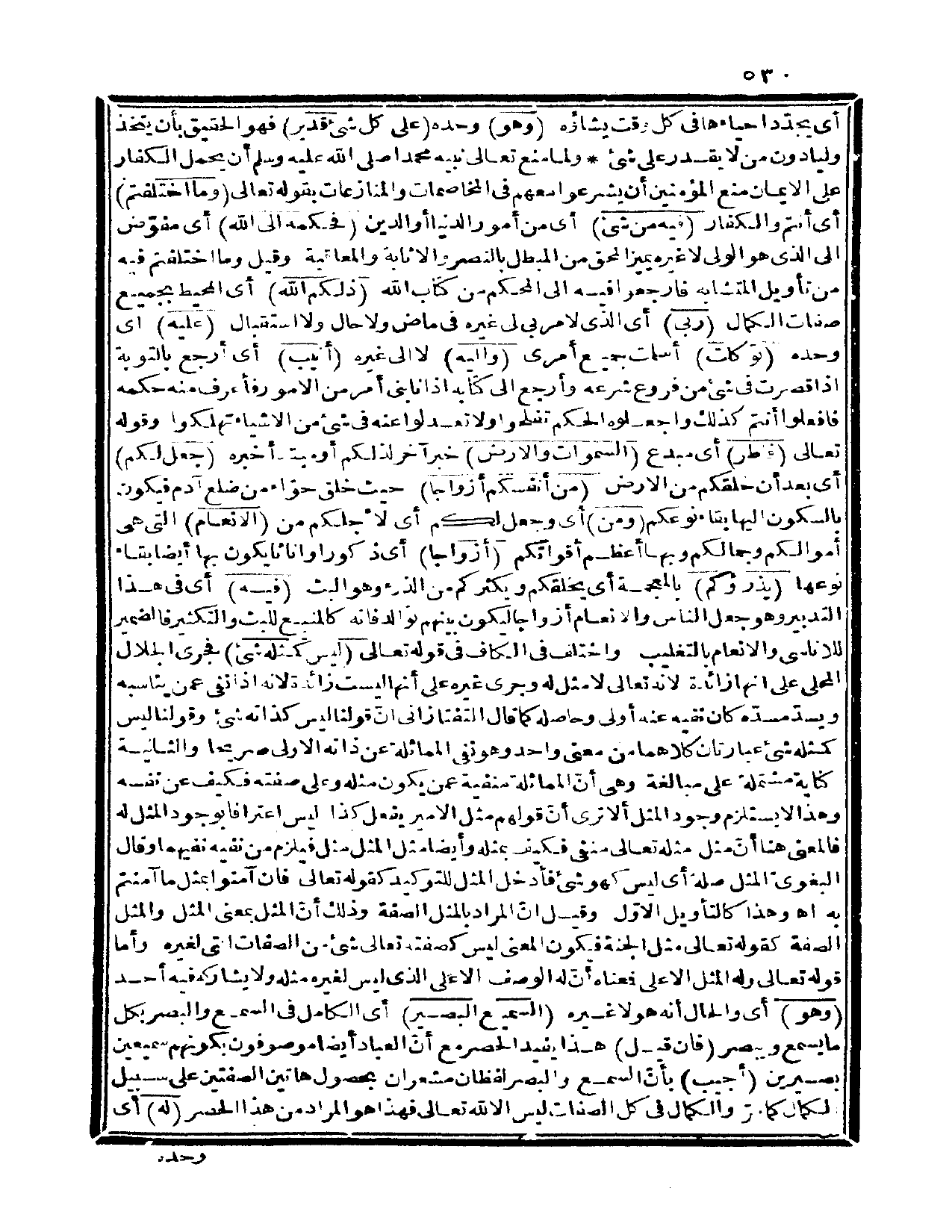 فمعناه أن له الوصف الأعلى الذي ليس لغيره مثله ولا يشاركه فيه أحد {وهو} أي: والحال أنه هو لا غيره {السميع البصير} أي: الكامل في السمع والبصر بكل ما يسمع ويبصر، فإن قيل: هذا يفيد الحصر مع أن العباد أيضاً موصوفون بكونهم سميعين بصيرين؟ أجيب: بأن السمع والبصر لفظان مشعران بحصول هاتين الصفتين على سبيل الكمال كما مر، والكمال في كل الصفات ليس إلا لله تعالى فهذا هو المراد من هذا الحصر.