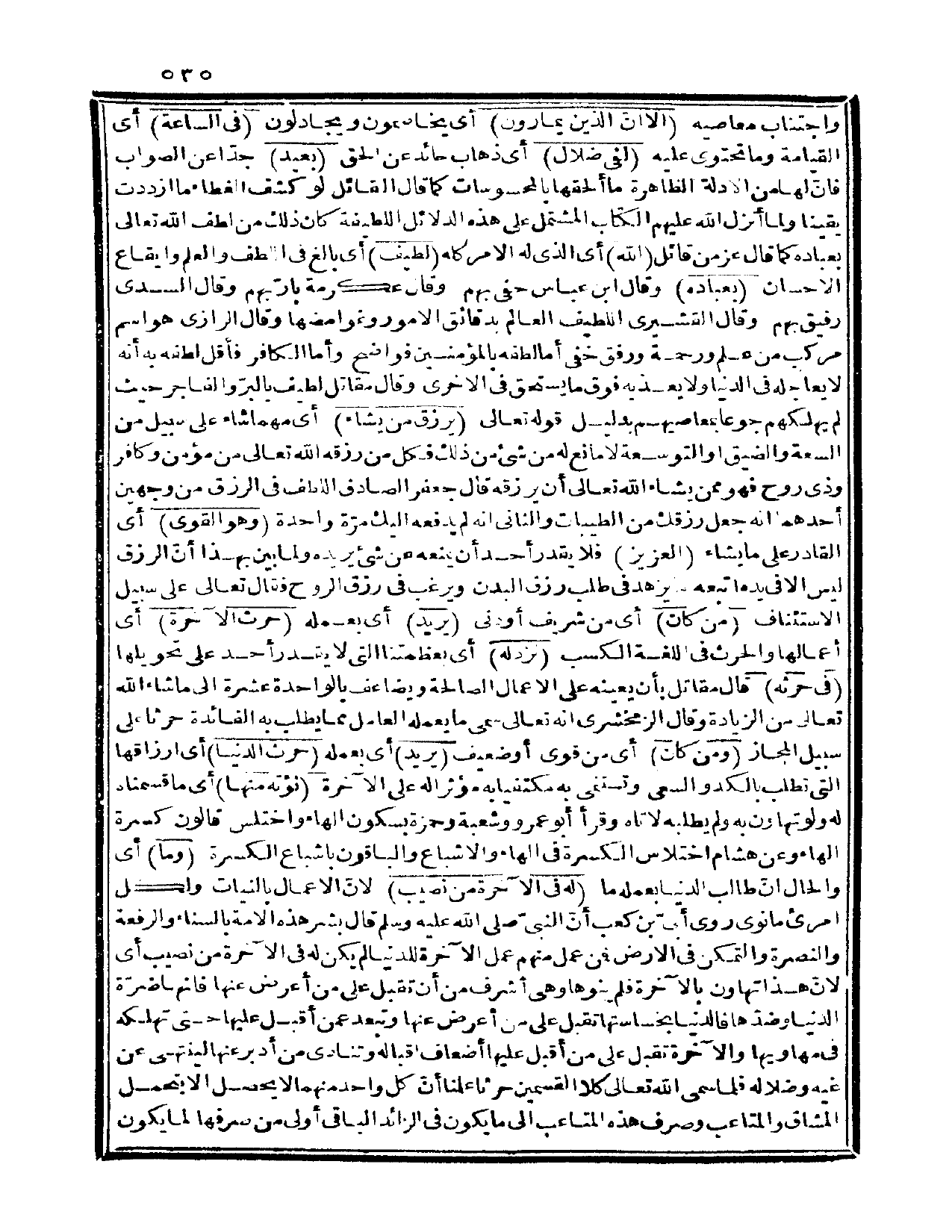 {من كان} أي: من شريف أو دني {يريد} أي: بعمله {حرث الآخرة} أي: أعمالها والحرث في اللغة الكسب {نزد له} أي: بعظمتنا التي لا يقدر أحد على تحويلها {في حرثه} قال مقاتل: بأن يعينه على الأعمال الصالحة ويضاعف بالواحدة عشرة إلى ما شاء الله تعالى من الزيادة، وقال الزمخشري: إنه تعالى سمى ما يعمله العامل مما يطلب به الفائدة حرثاً على سبيل المجاز {ومن كان} أي: من قوي أو ضعيف {يريد} أي: بعمله {حرث الدنيا} أي: أرزاقها التي تطلب بالكد والسعي وتستنمي به مكتفياً به مؤثراً له على الآخرة {نؤته منها} أي: ما قسمناه له ولو تهاون به ولم يطلبه لآتاه، وقرأ أبو عمرو وشعبة وحمزة بسكون الهاء، واختلس قالون كسرة الهاء، وعن هشام اختلاس الكسرة في الهاء والإشباع، والباقون بإشباع الكسرة {وما} أي: والحال أن طالب الدنيا بعمله ما {له في الآخرة من نصيب} لأن الأعمال بالنيات ولكل امرئ ما نوى، وروى أبي بن كعب أن النبي صلى الله عليه وسلم قال: «بشر هذه الأمة بالسناء والرفعة والنصرة والتمكن في الأرض، فمن عمل منهم عمل الآخرة للدنيا لم يكن له في الآخرة من نصيب» . أي: لأن هذا تهاون بالآخرة فلم يبنوها وهي أشرف من أن تقبل على من أعرض عنها فإنها ضرة الدنيا وضدها، فالدنيا بخساستها تقبل على من أعرض عنها وتبعد عمن أقبل عليها حتى تهلكه في مهاويها، والآخرة تقبل على من أقبل عليها أضعاف إقباله وتنادي من أدبر عنها لينتهي عن غيه وضلاله، فلما سمى الله تعالى كلا القسمين حرثاً علمنا أن كل واحد منهما لا يحصل إلا بتحمل المشاق والمتاعب وصرف هذه المتاعب إلى ما يكون في الزائد الباقي أولى من صرفها لما يكون
