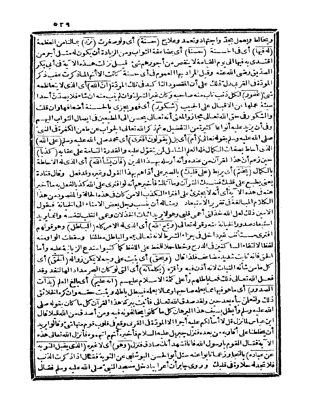 {أم} أي: بل {يقولون افترى} أي: محمد صلى الله عليه وسلم {على الله} الذي أحاط بصفات الكمال فله العلم الشامل لمن يتقول عليه والقدرة التامة على عقابه {كذباً} حين زعم أن هذا القرآن من عنده وأنه أرسله بهذا الدين {فإن يشأ الله} أي: الذي له الإحاطة بالكمال {يختم} أي: يربط {على قلبك} بالصبر على أذاهم بهذا القول وغيره وقد فعل، وقال قتادة: يعني يطبع على قلبك فينسيك القرآن وما آتاك فأخبرهم أنه لو افترى على الله كذباً لفعل به ما أخبر عنه في هذه الآية، أي: أنه لا يجترئ على افتراء الكذب إلا من كان في هذه الحالة، والمقصود من هذا الكلام: المبالغة في تقرير الاستبعاد ومثاله: أن ينسب رجل بعض الأمناء إلى الخيانة فيقول الأمين: ذلك لعل الله خذلني أعمى قلبي وهو لا يريد إثبات الخذلان وعمى القلب لنفسه وإنما يريد استبعاد صدور الخيانة منه وقوله تعالى {ويمح الله} أي: الذي له الأمر كله {الباطل} وهو قولهم افترى مستأنف غير داخل في جزاء الشرط لأنه تعالى يمحو الباطل مطلقاً وسقطت الواو منه لفظاً لالتقاء الساكنين في الدرج وخطا حملاً للخط على اللفظ كما كتبوا سندع الزبانية عليه وأما الحق فإنه ثابت شديد مضاعف فلذا قال: {ويحق} أي: يثبت على وجه لا يمكن زواله {الحق} أي: كل ما من شأنه الثبات لأنه أذن فيه وأقره {بكلماته} أي: التي لو كان البحر مداداً لها لنفذ وقد فعل الله تعالى ذلك فمحا باطلهم وأعلى كلمة الإسلام عليهم {إنه عليم} أي: بالغ العلم {بذات الصدور} أي: ما هو فيها مما يعلمه صاحبها ومما لا يعلمه فيبطل باطله ويثبت حقه وإن كره الخلائق ذلك ولتعلمن نبأه بعد حين، ولقد صدق الله تعالى فأثبت ببركة هذا القرآن كل ما كان يقوله صلى الله عليه وسلم وأبطل بسيف هذا البرهان كل ما كانوا يخالفونه فيه ومن أصدق من الله قيلاً، قال ابن عباس: لما نزل {قل لا أسألكم عليه أجراً إلا المودة في القربى} وقع في قلوب قوم منها شيء وقالوا: يريد