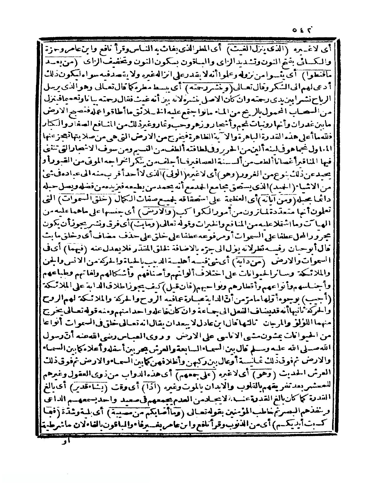 وروى العباس رضي الله عنه أن رسول الله صلى الله عليه وسلم قال: «بين السماء السابعة والعرش بحر بين أسفله وأعلاه كما بين السماء والأرض ثم فوق ذلك ثمانية أوعال بين ركبهن وأظلافهن كما بين السماء والأرض ثم فوق ذلك العرش» الحديث. {وهو} أي: لا غيره {على جمعهم} أي: هذه الدواب من ذوي العقول وغيرهم للمحشر بعد تفريقهم بالقلوب والأبدان بالموت وغيره {إذا} في وقت {يشاء قدير} أي: بالغ القدرة كما كان بالغ القدرة عند الإيجاد من العدم يجمعهم في صعيد واحد يسمعهم الداعي وينقذهم البصر ثم خاطب المؤمنين بقوله تعالى: