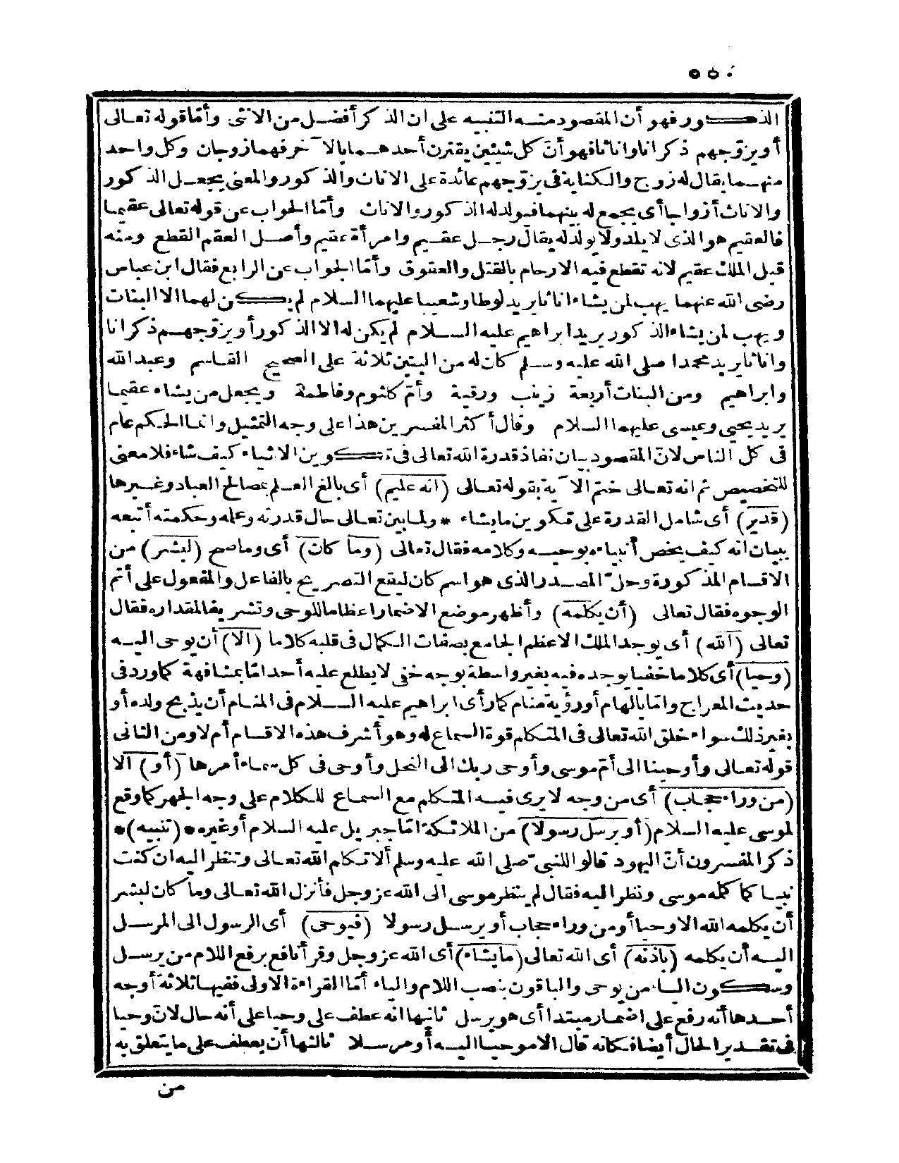 تنبيه: ذكر المفسرون: أن اليهود قالوا للنبي صلى الله عليه وسلم ألا تكلم الله تعالى وتنظر إليه إن كنت نبياً كما كلمه موسى ونظر إليه؟ فقال: «لم ينظر موسى إلى الله عز وجل فأنزل الله تعالى {وما كان لبشر أن يكلمه الله إلا وحيا أو من وراء حجاب أو يرسل رسولاً} ، {فيوحي} أي: الرسول إلى المرسل إليه أن يكلمه {بإذنه} أي: الله تعالى {ما يشاء} أي: الله عز وجل، وقرأ نافع برفع اللام من يرسل وسكون الياء من يوحي والباقون بنصب اللام والياء أما القراءة الأولى ففيها ثلاثة أوجه؛ أحدها: أنه رفع على إضمار مبتدأ، أي: هو يرسل، ثانيها: أنه عطف على وحياً على أنه حال لأن وحياً في تقدير الحال أيضاً فكأنه قال: إلا موحياً إليه أو مرسلاً، ثالثها: أن يعطف على ما يتعلق به