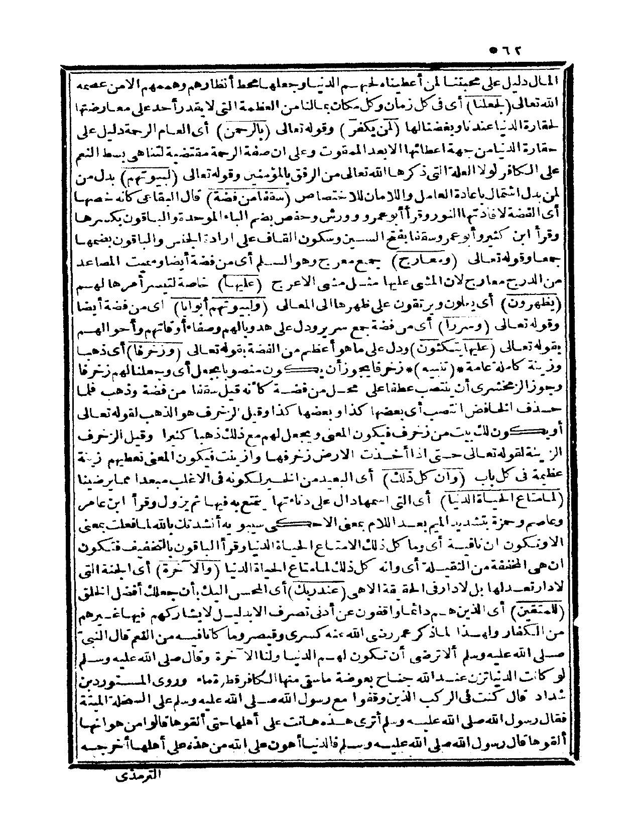 المال دليل على محبتنا لمن أعطيناه لحبهم الدنيا وجعلها محط أنظارهم وهممهم إلا من عصمه الله تعالى {لجعلنا} أي: في كل زمان وكل مكان بما لنا من العظمة التي لا يقدر أحد على معارضتها لحقارة الدنيا عندنا وبغضاً لها {لمن يكفر} وقوله تعالى: {بالرحمن} أي: العام الرحمة دليل على حقارة الدنيا من جهة إعطائها إلا بعد الممقوت، وعلى أن صفة الرحمة مقتضية لتناهي بسط النعم على الكافر لولا العلة التي ذكرها الله تعالى من الرفق بالمؤمنين وقوله تعالى: {لبيوتهم} بدل من لمن بدل اشتمال بإعادة العامل واللامان للاختصاص {سقفاً من فضة} قال البقاعي: كأنه خصها أي: الفضة لإفادتها النور، وقرأ أبو عمرو وورش وحفص بضم الباء الموحدة والباقون بكسرها، وقرأ ابن كثير وأبو عمرو وسقفاً بفتح السين وسكون القاف على إرادة الجنس، والباقون بضمها جمعاً وقوله تعالى: {ومعارج} جمع معرج وهو السلم أي: من فضة أيضاً وسميت المصاعد من الدرج معارج لأن المشي عليها مثل مشي الأعرج {عليها} خاصة لتيسر أمرها لهم {يظهرون} أي: يعلون ويرتقون على ظهرها إلى المعالي.