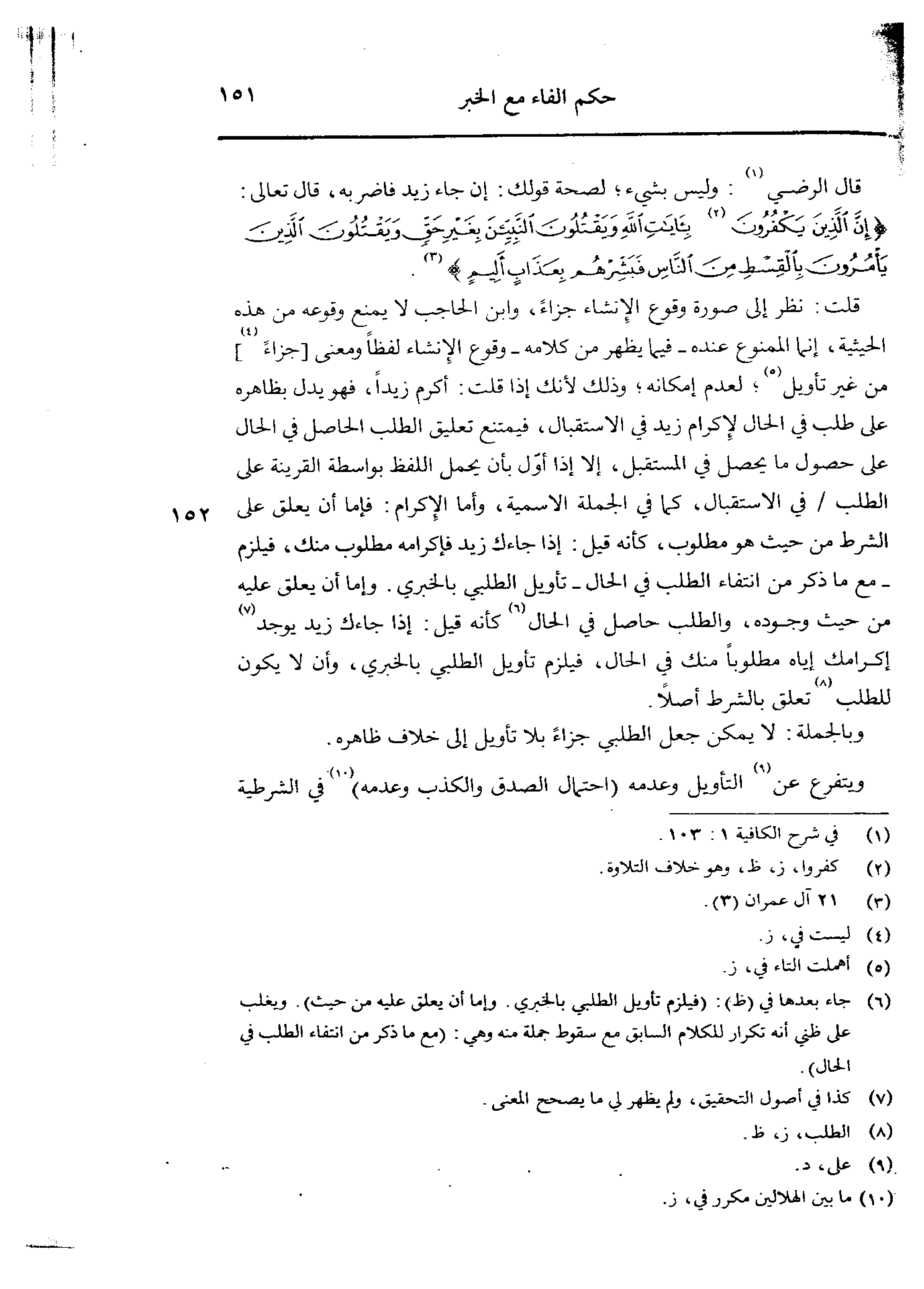 قال الرضي: وليس بشيء؛ لصحة قولك: إن جاء زيد فاضر به، قال تعالى: {إن الذين يكفرون بأيات الله ويقتلون النبين بغير حق ويقتلون الذين يأمرون بالقسط من الناس فبشرهم بعذاب أليم}.
