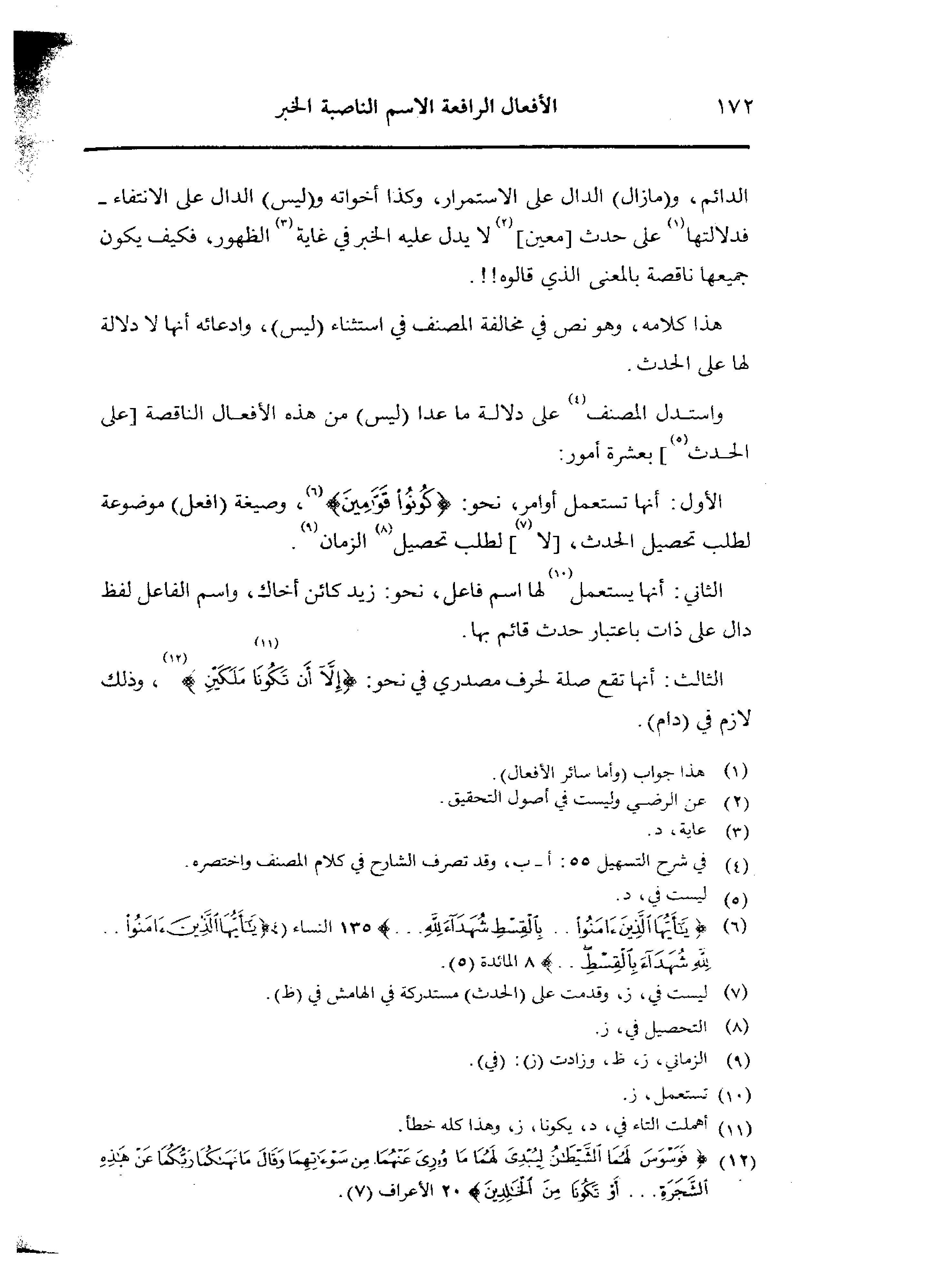 واستدل المصنف على دلالة ما عدا (ليس) من هذه الأفعال الناقصة [على الحدث] بعشرة أمور: