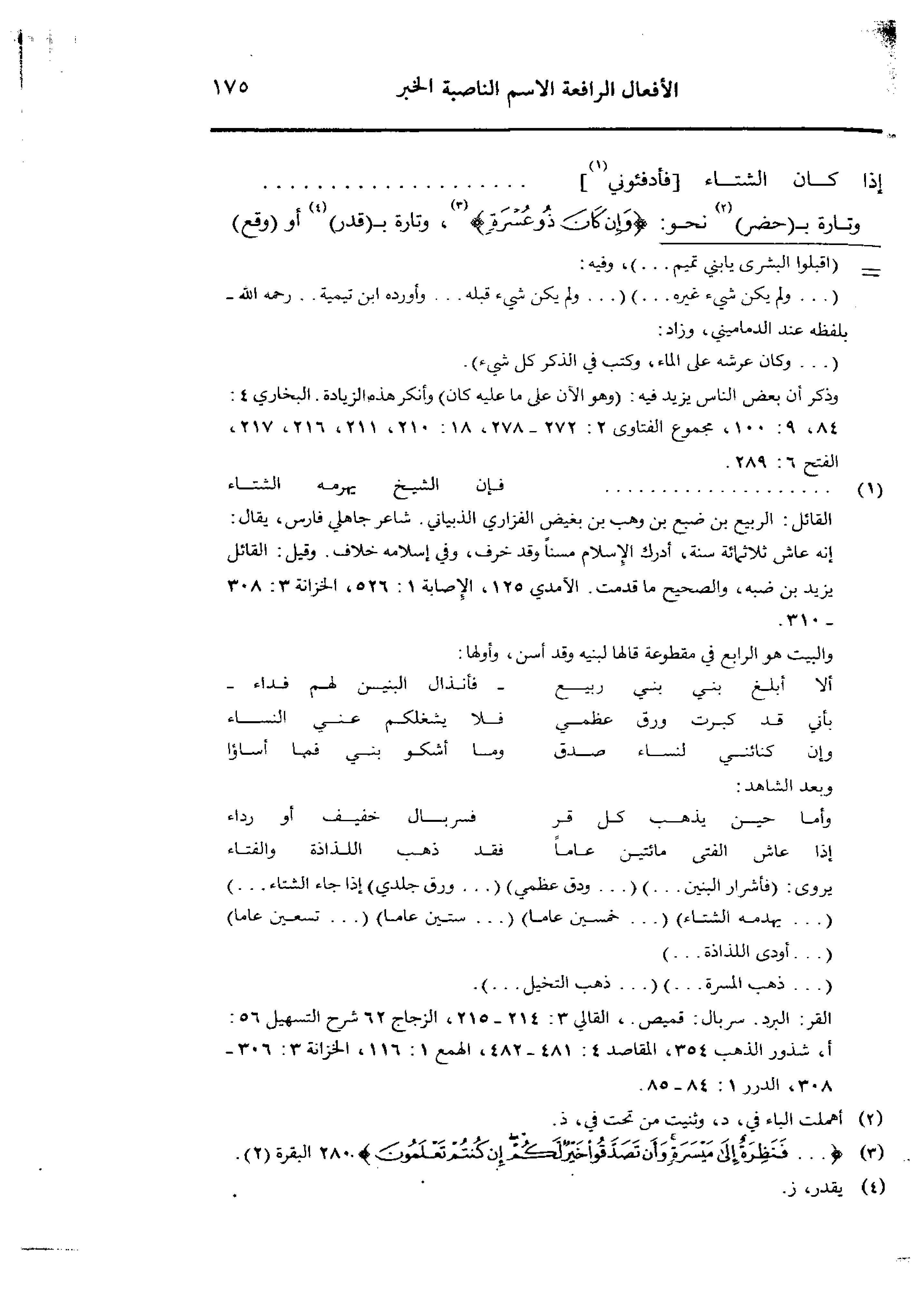وتارة بـ ـ (حضر) نحو: {وإن كان ذو عسرة}، وتارة بـ ـ (قدر) أو (وقع)