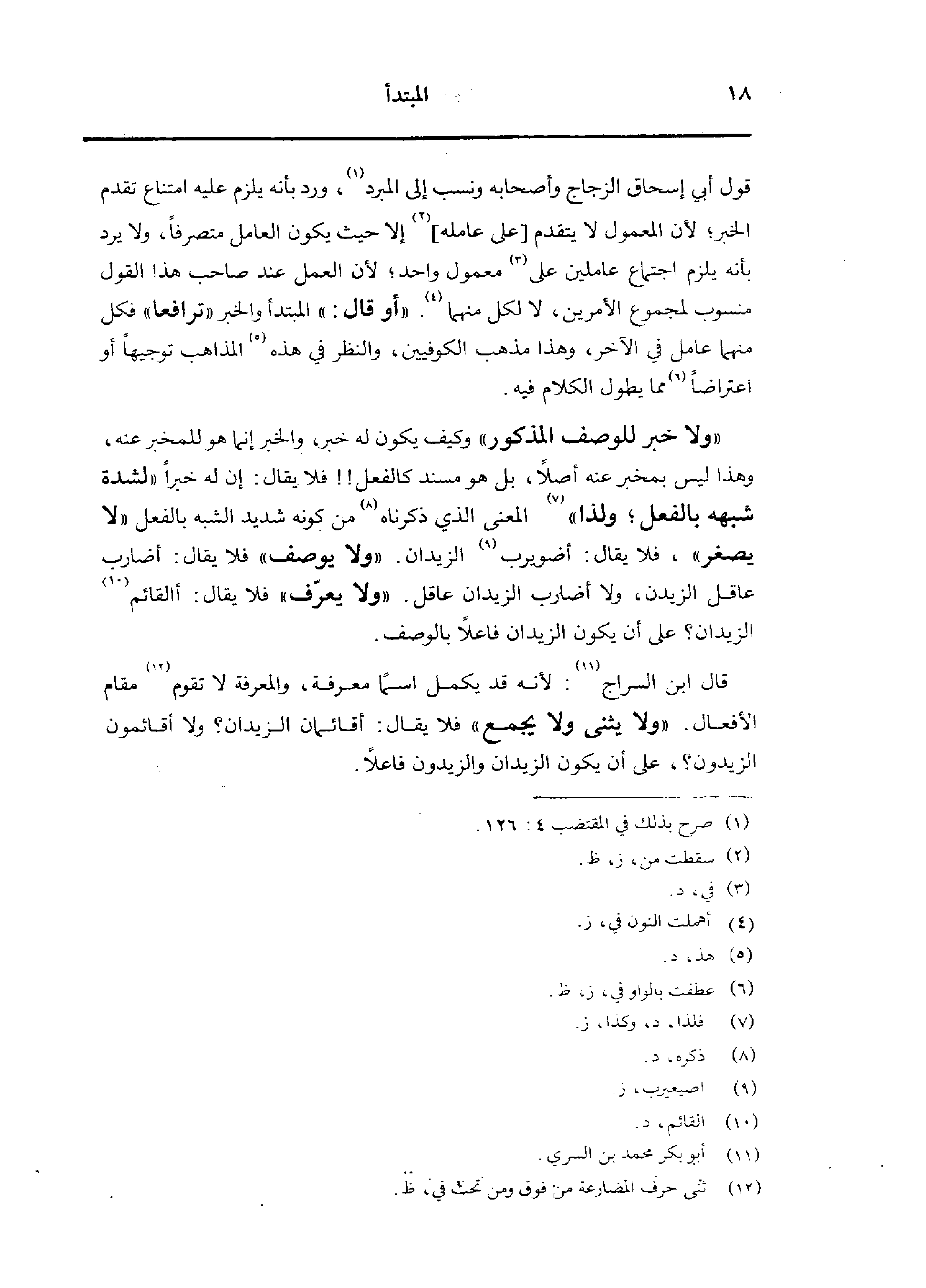 قول أبي إسحاق الزجاج وأصحابه ونسب إلى المبرد، ورد بأنه يلزم عليه امتناع تقدم الخبر؛ لأن المعمول لا يتقدم [على عامله] إلا حيث يكون العامل متصرفًا، ولا يرد بأنه يلزم اجتماع عاملين على معمول واحد؛ لأن العمل عند صاحب هذا القول منسوب لمجموع الأمرين، لا لكل منهما. «أو قال» المبتدأ والخبر «ترافعا» فكل منهما عامل في الآخر، وهذا مذهب الكوفيين، والنظر في هذه المذاهب توجيهًا أو اعتراضًا مما يطول الكلام فيه.