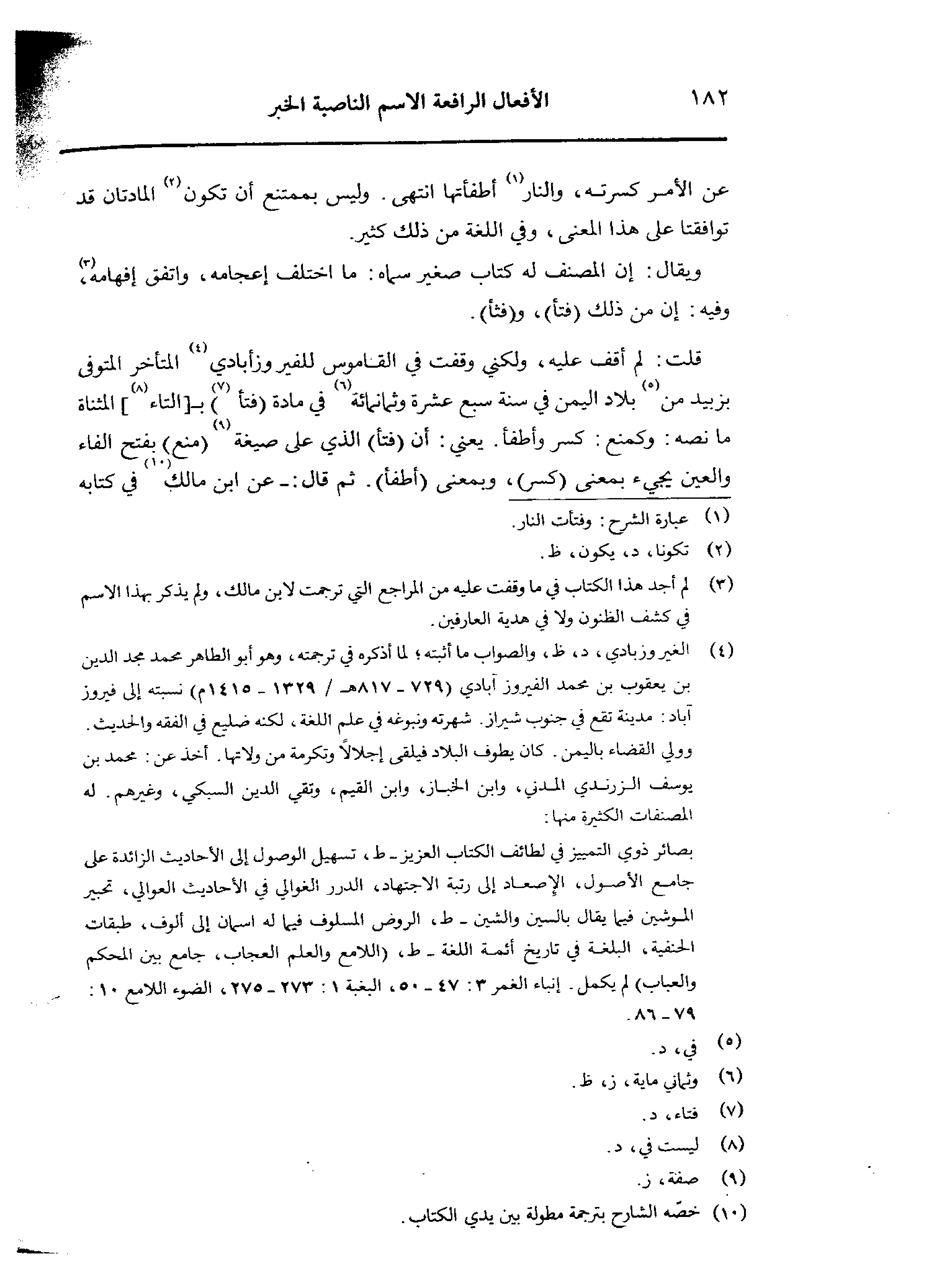 ويقال: إن المصنف له كتاب صغير سماه: ما اختلف إعجامه، واتفق إفهامه، وفيه: إن من ذلك (فتأ)، و (فثأ).