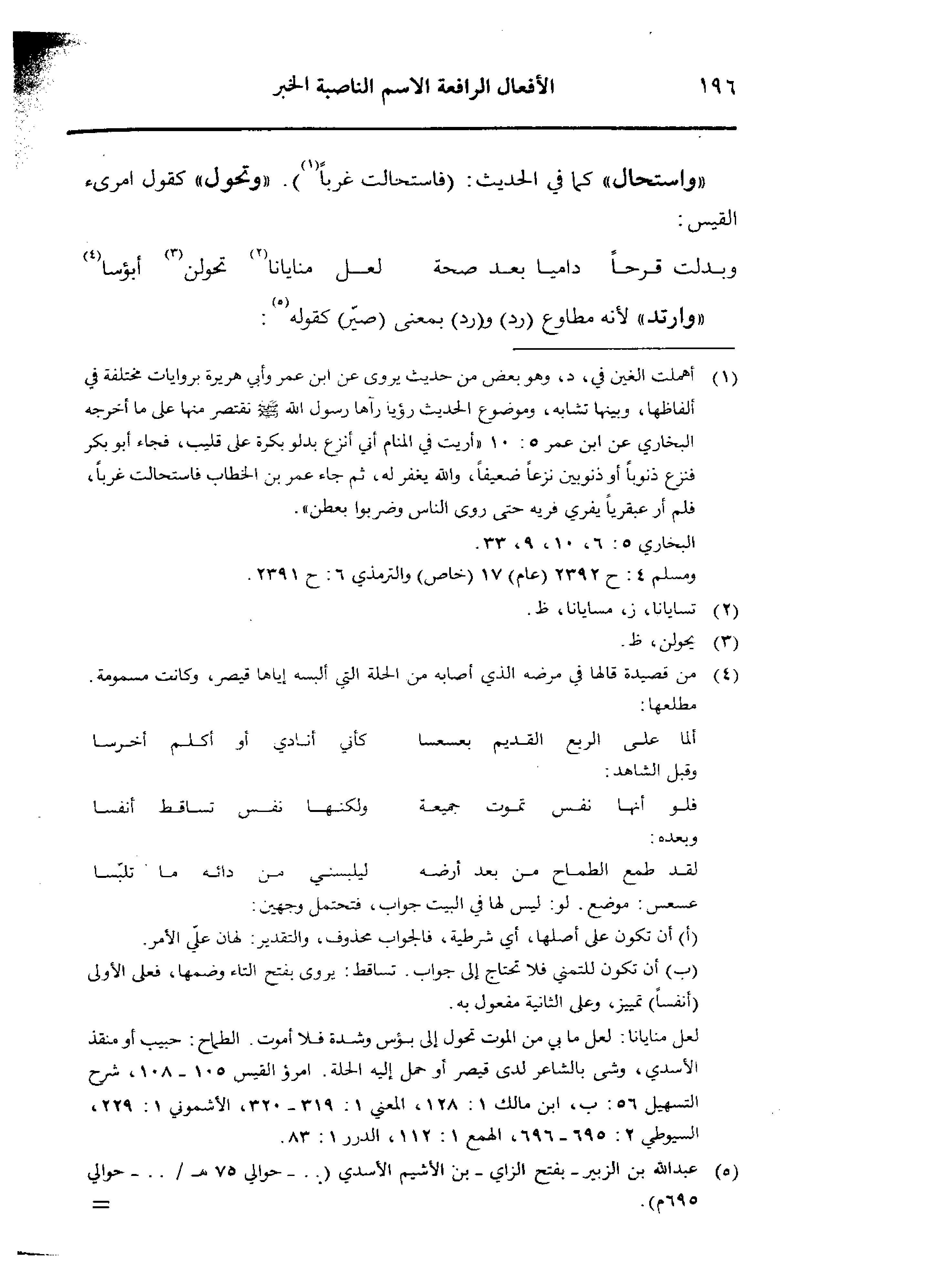 «واستحال» كما في الحديث: (فاستحالت غربًا). «وتحول» كقول أمرئ القيس: