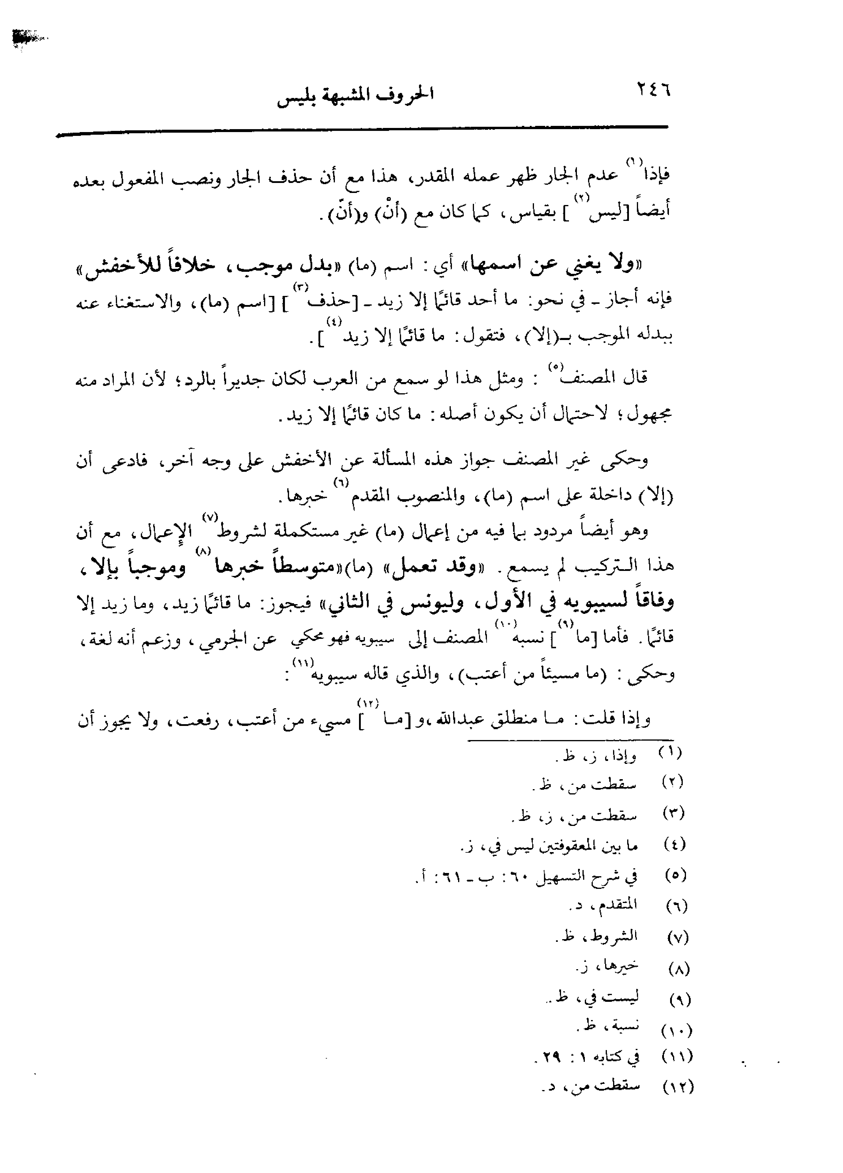 وإذا قلت: ما منطلق عبدالله، و [ما] مسيء من أعتب، رفعت، ولا يجوز أن
