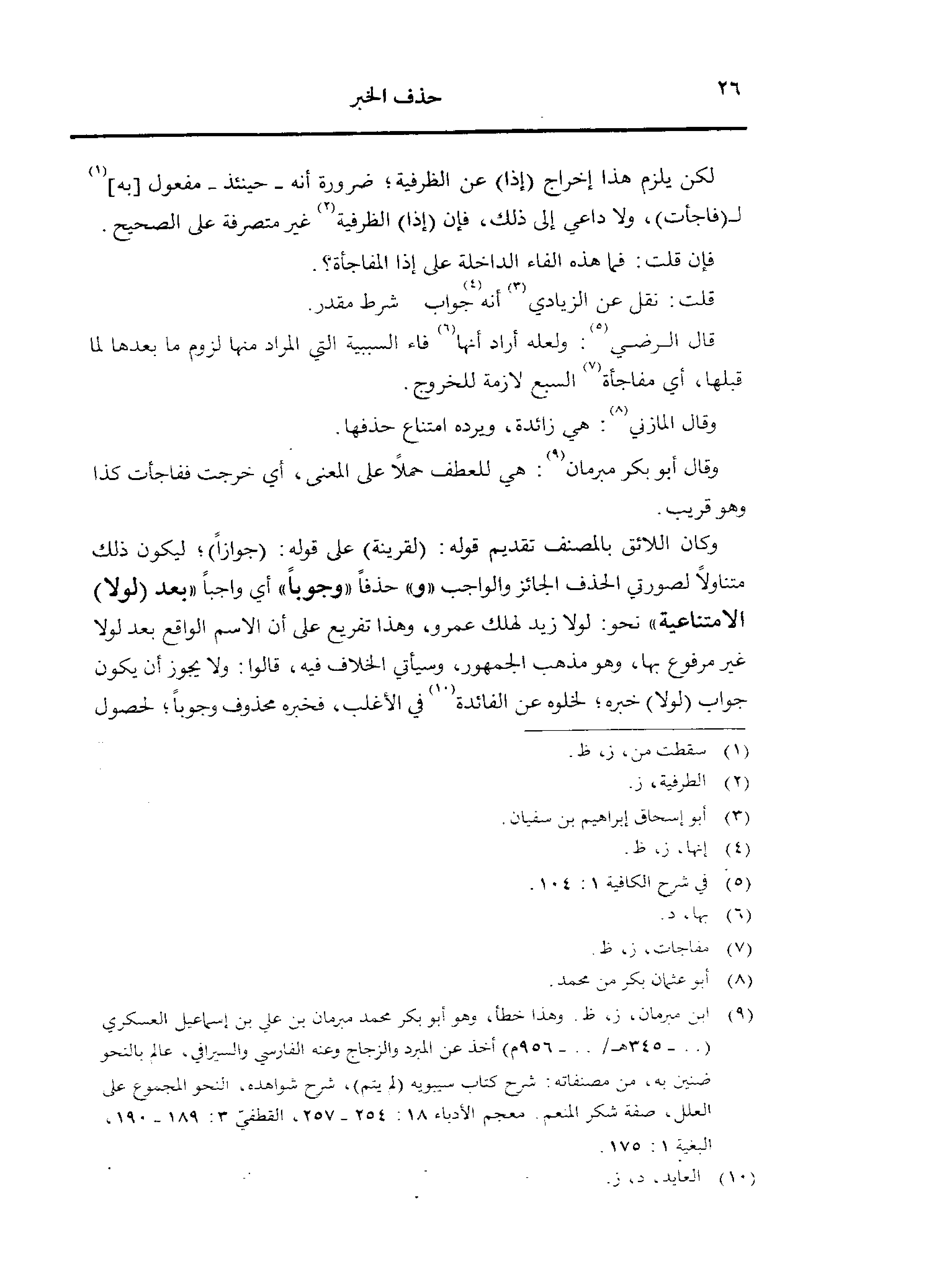 وكان اللائق بالمصنف تقديم قوله: (لقرينة) على قوله: (جوازًا)؛ ليكون ذلك متناولًا لصورتي الحذف الجائز والواجب «و» حذفًا «وجوبًا» أي واجبًا «بعد (لولا) الامتناعية» نحو: لولا زيد لهلك عمرو، وهذا تفريغ على أن الاسم الواقع بعد لولا غير مرفوع بها، وهو مذهب الجمهور، وسيأتي الخلاف فيه، قالوا: ولا يجوز أن يكون جواب (لولا) خبره؛ لخلوه عن الفائدة في الأغلب، فخبره محذوف وجوبًا؛ لحصول