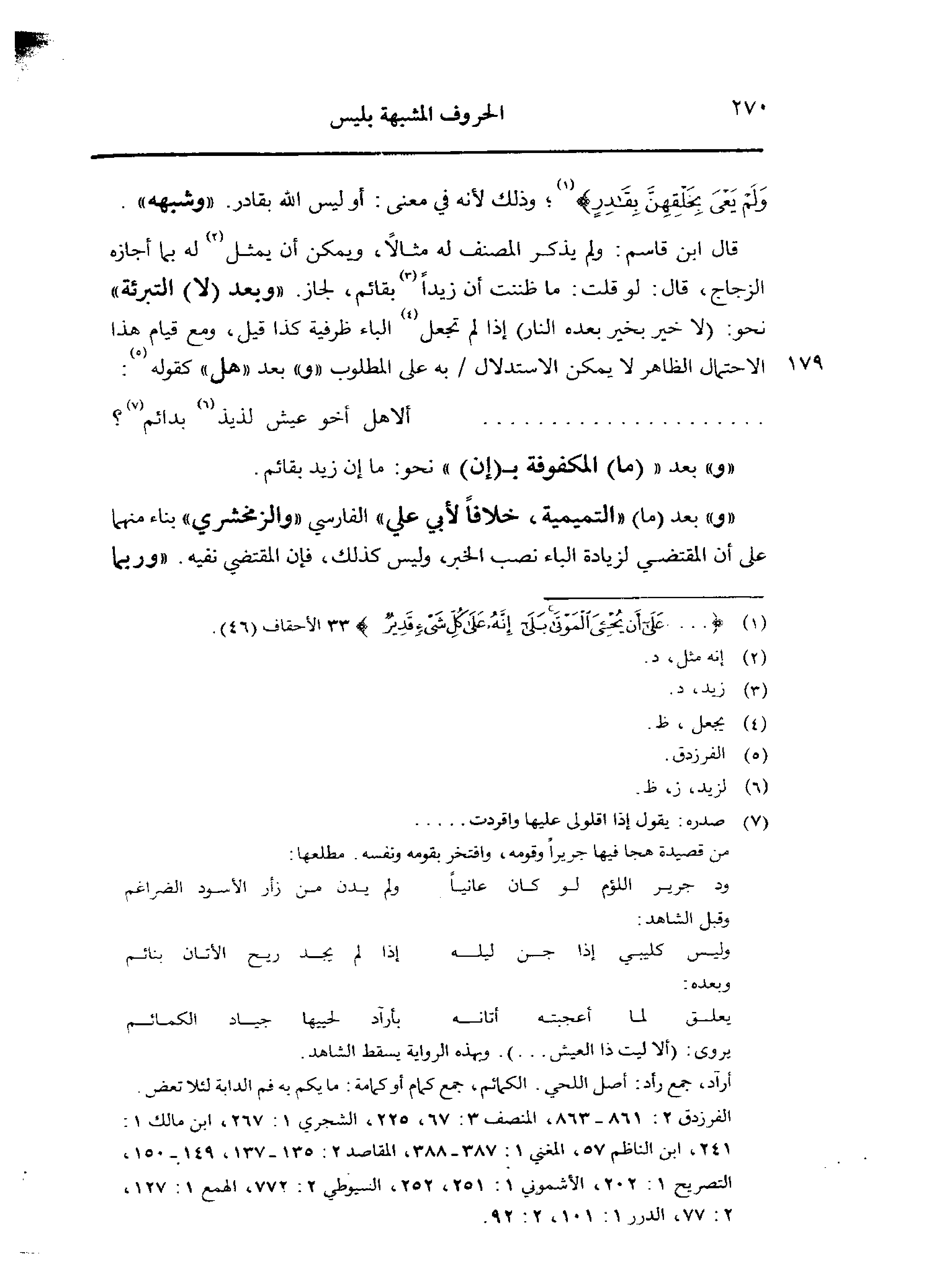 ولم يعى بخلقهن بقادرِ}؛ وذلك لأنه في معنى: أو ليس الله بقادر. «وشبهه».