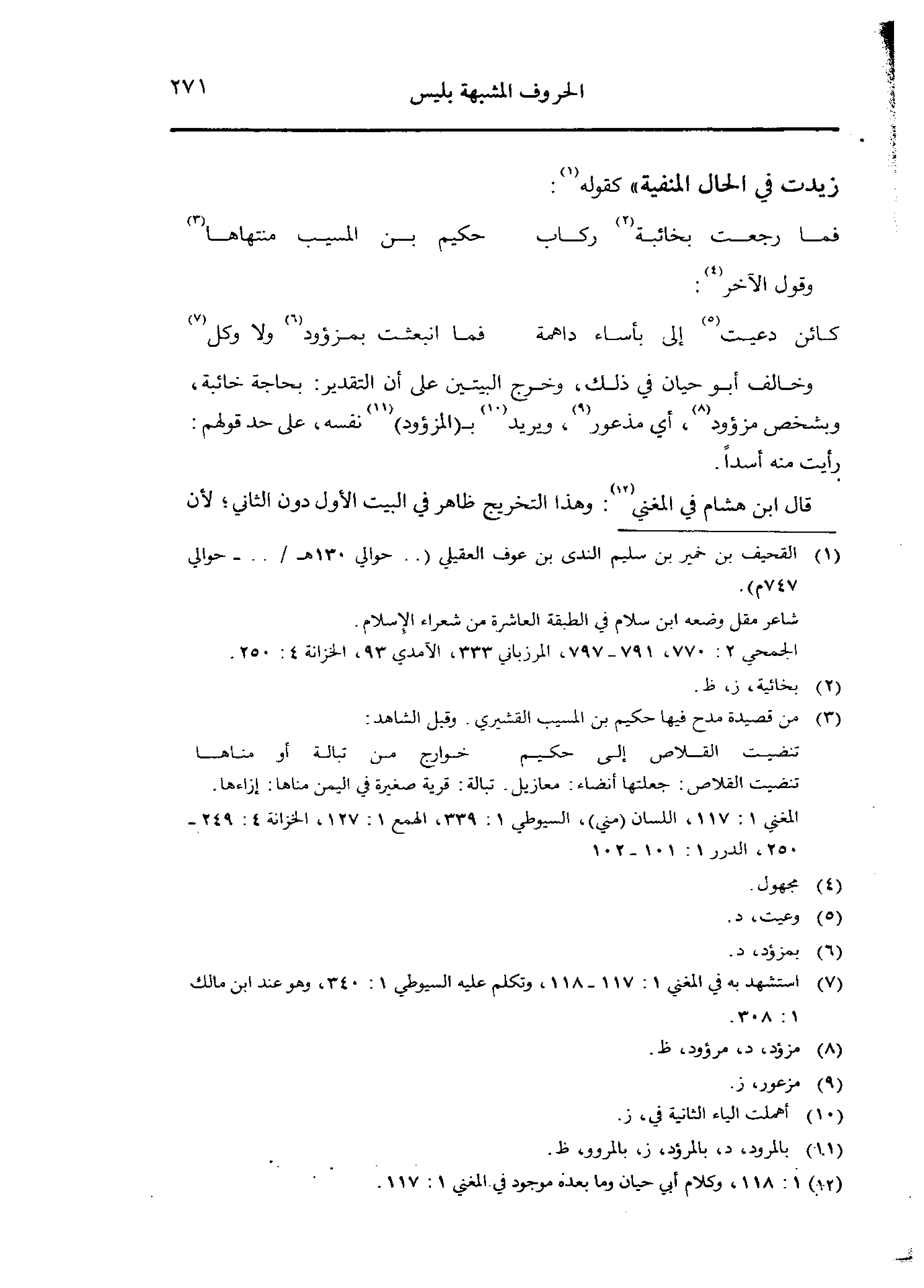 قال ابن هشام في المغني: وهذا التخريج ظاهر في البيت الأول دون الثاني؛ لأن