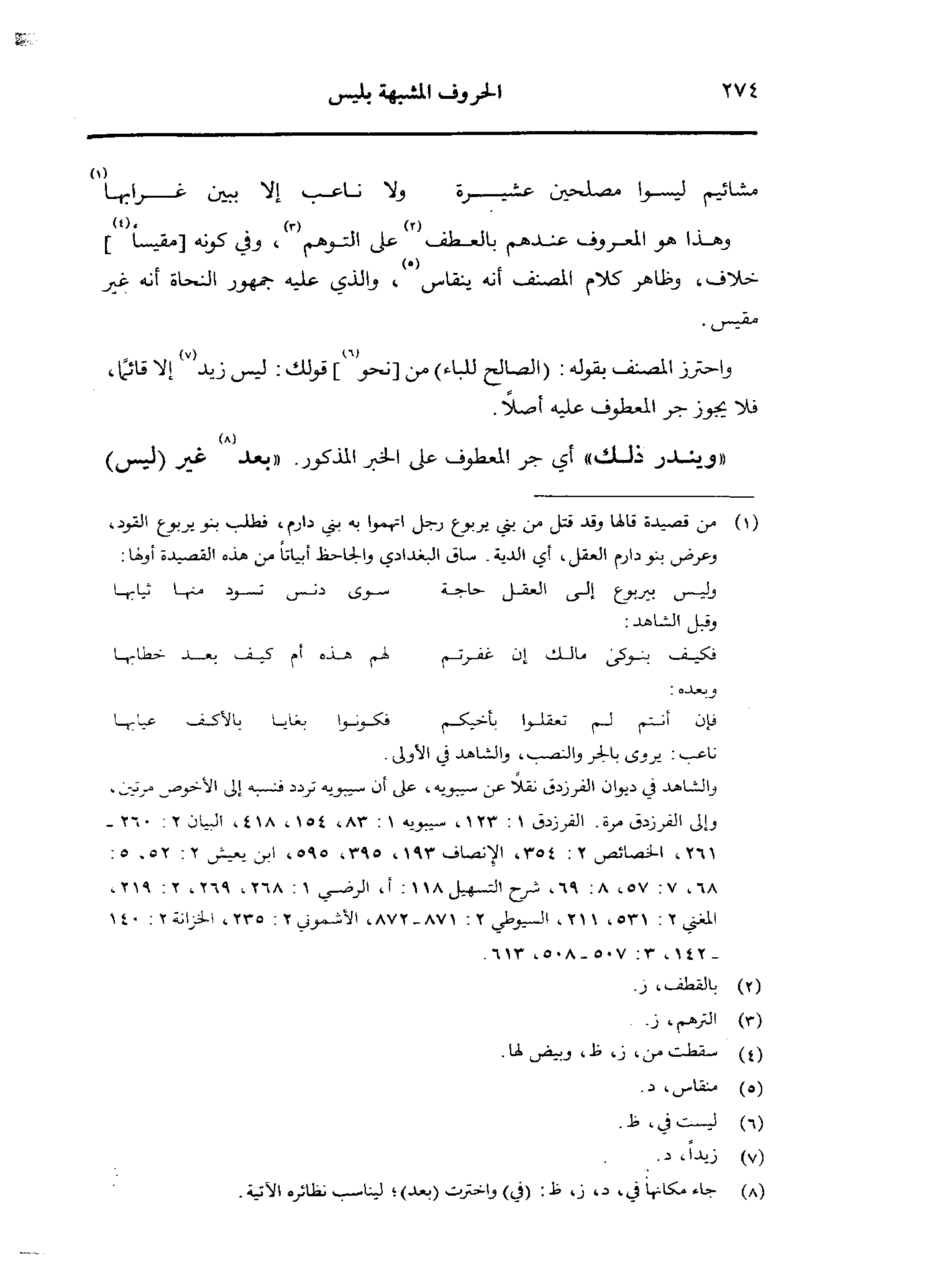 «ويندر ذلك» أي جر المعطوف على الخبر المذكور. «بعد غير (ليس)