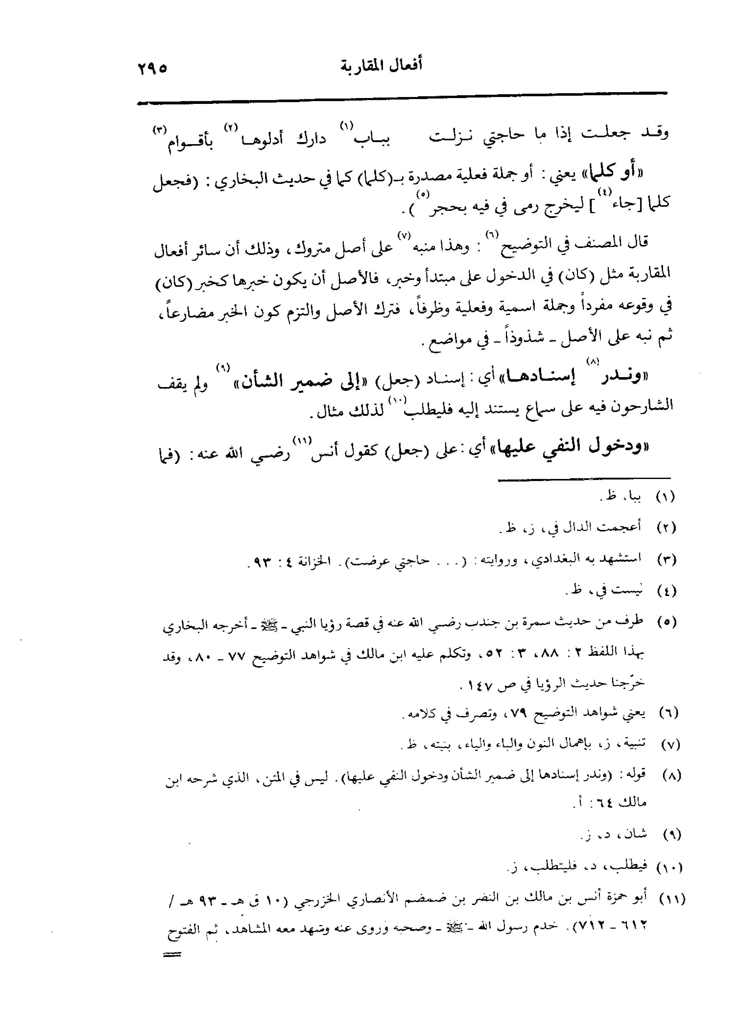 «وندر إسنادها» أي/ إسناد (جعل) «إلى ضمير الشأن» ولم يقف الشارحون فيه على سماع يستند إليه فليطلب لذلك مثال.