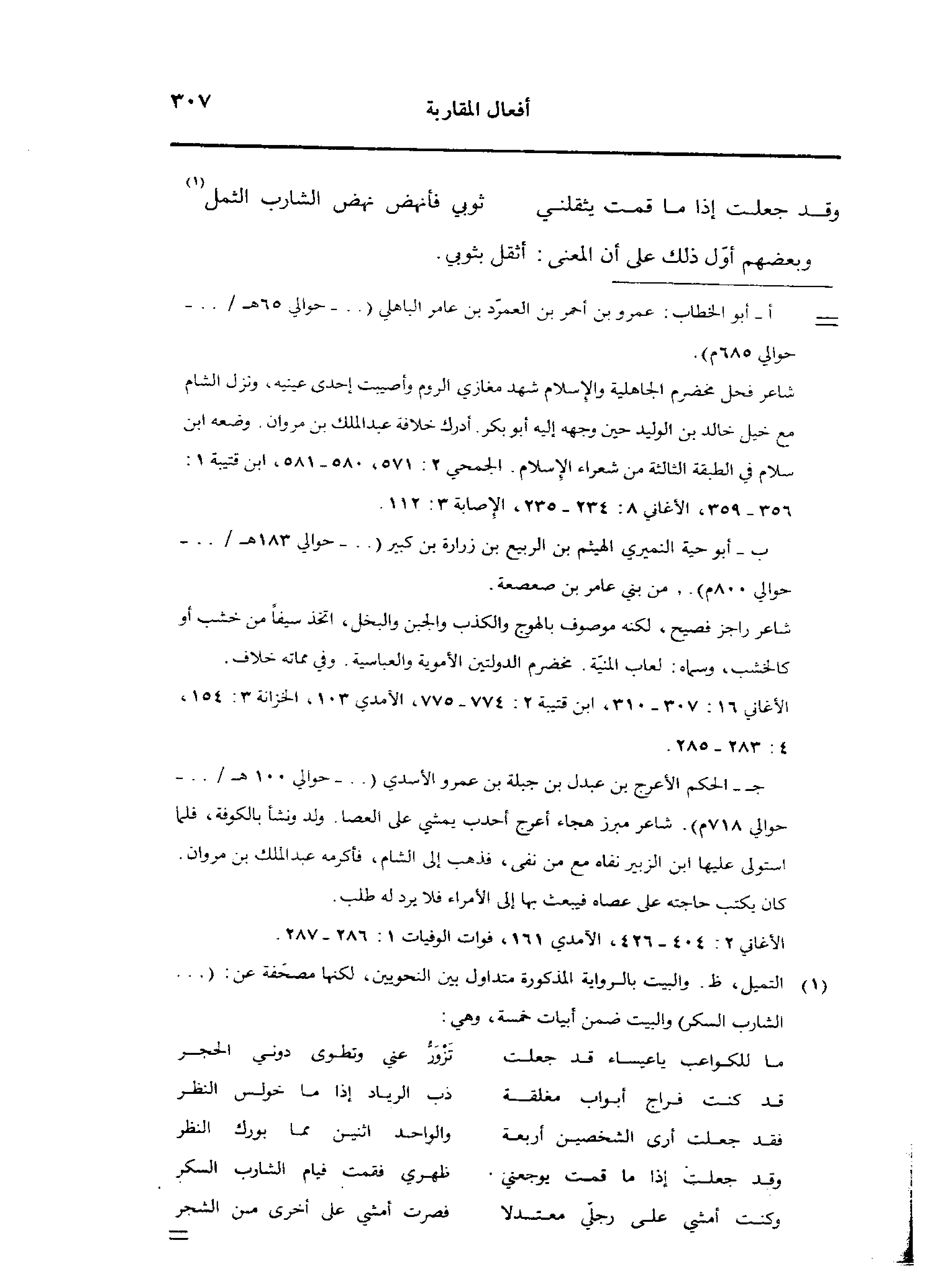 وقد جعلت إذا ما قمت بثقلني *** ثوبي فأنهض نهض الشارب الثمل