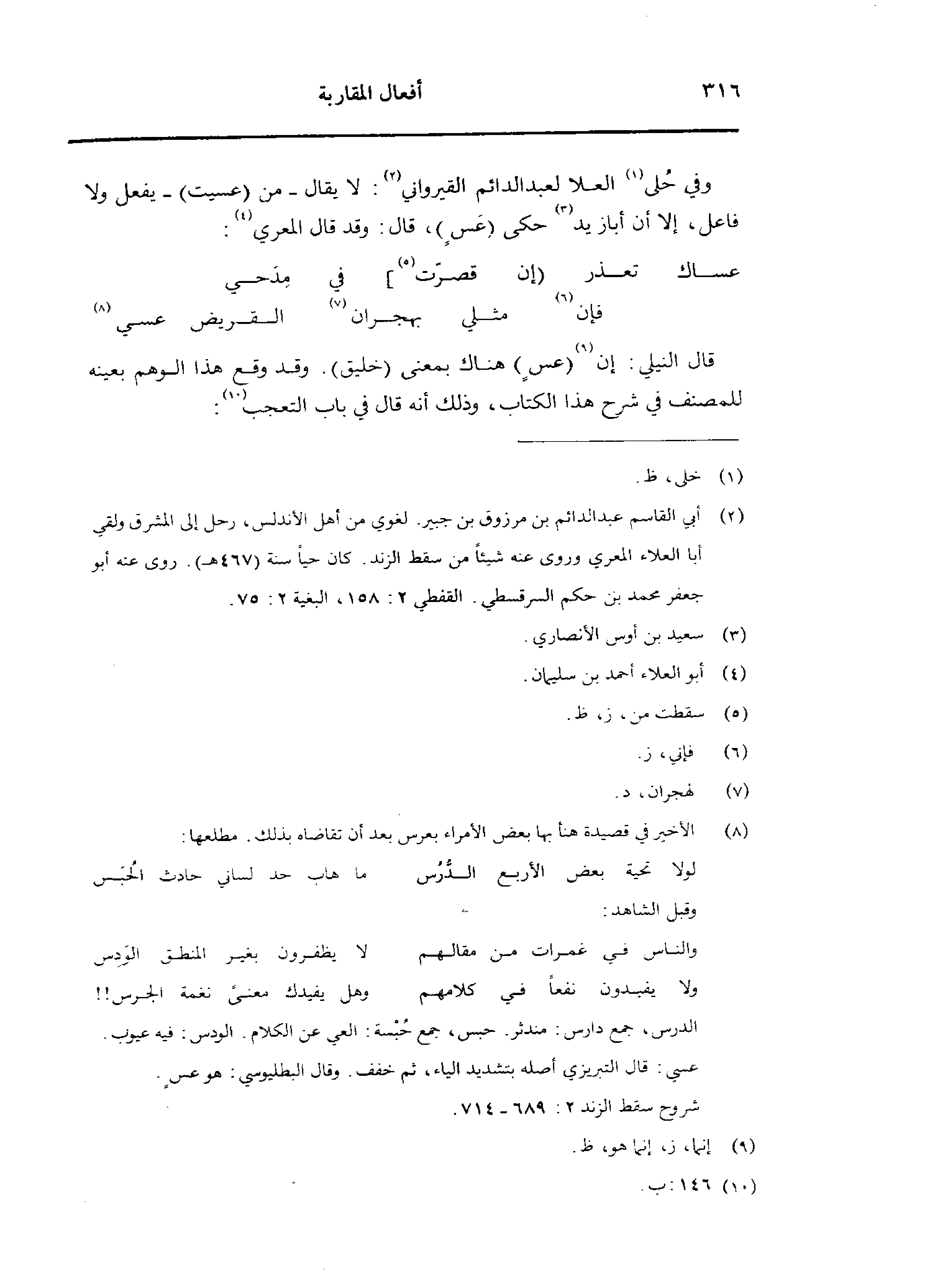 قال النيلي: إن (عسٍ) هناك بمعنى (خليق 9.وقد وقع هذا الوهم بعينه للمصنف في شرح الكتاب، وذلك أنه قال في باب التعجب: