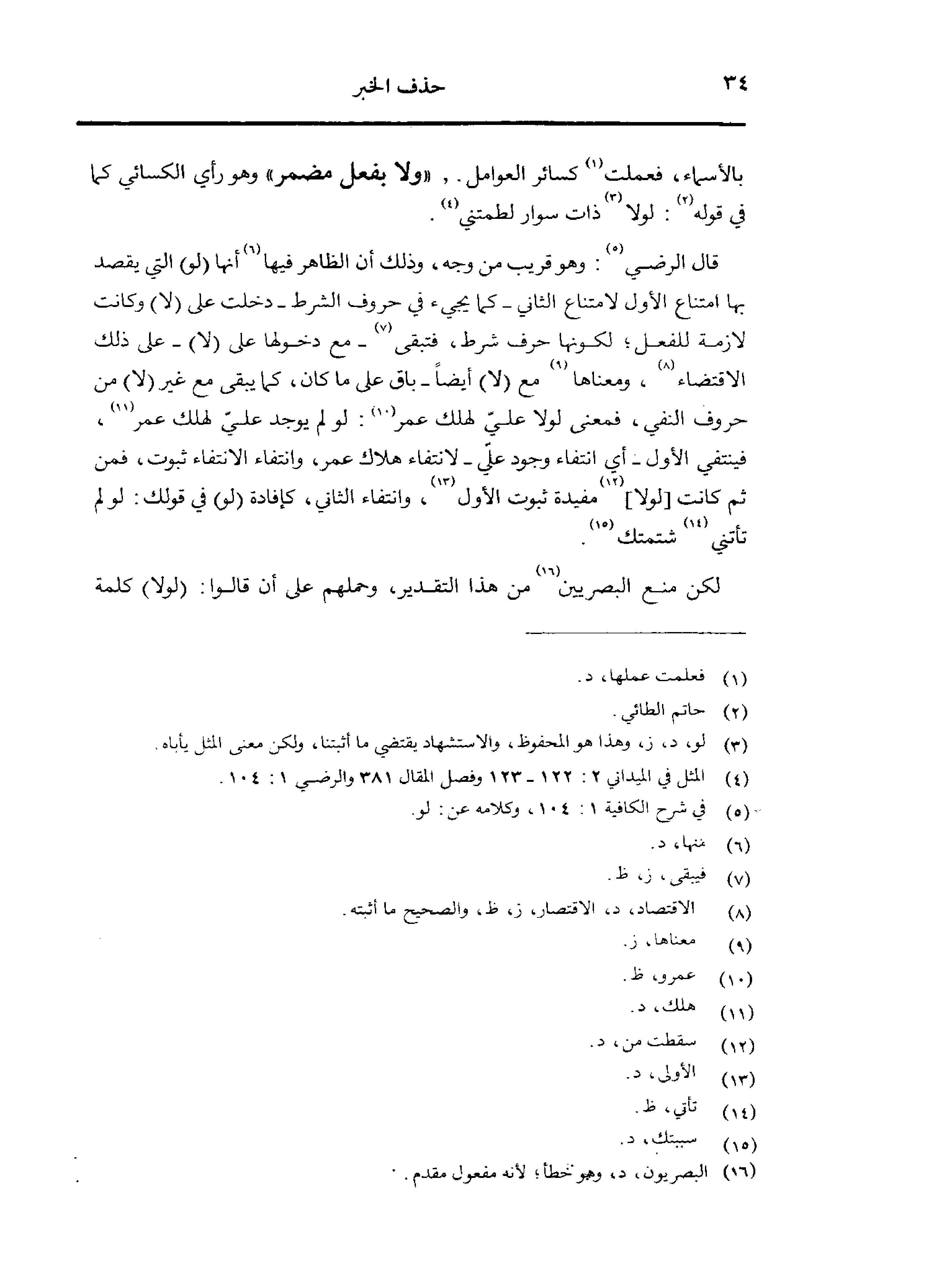 لكن منع البصريين من هذا التقدير، وحملهم على أن قالوا: (لولا) كلمة