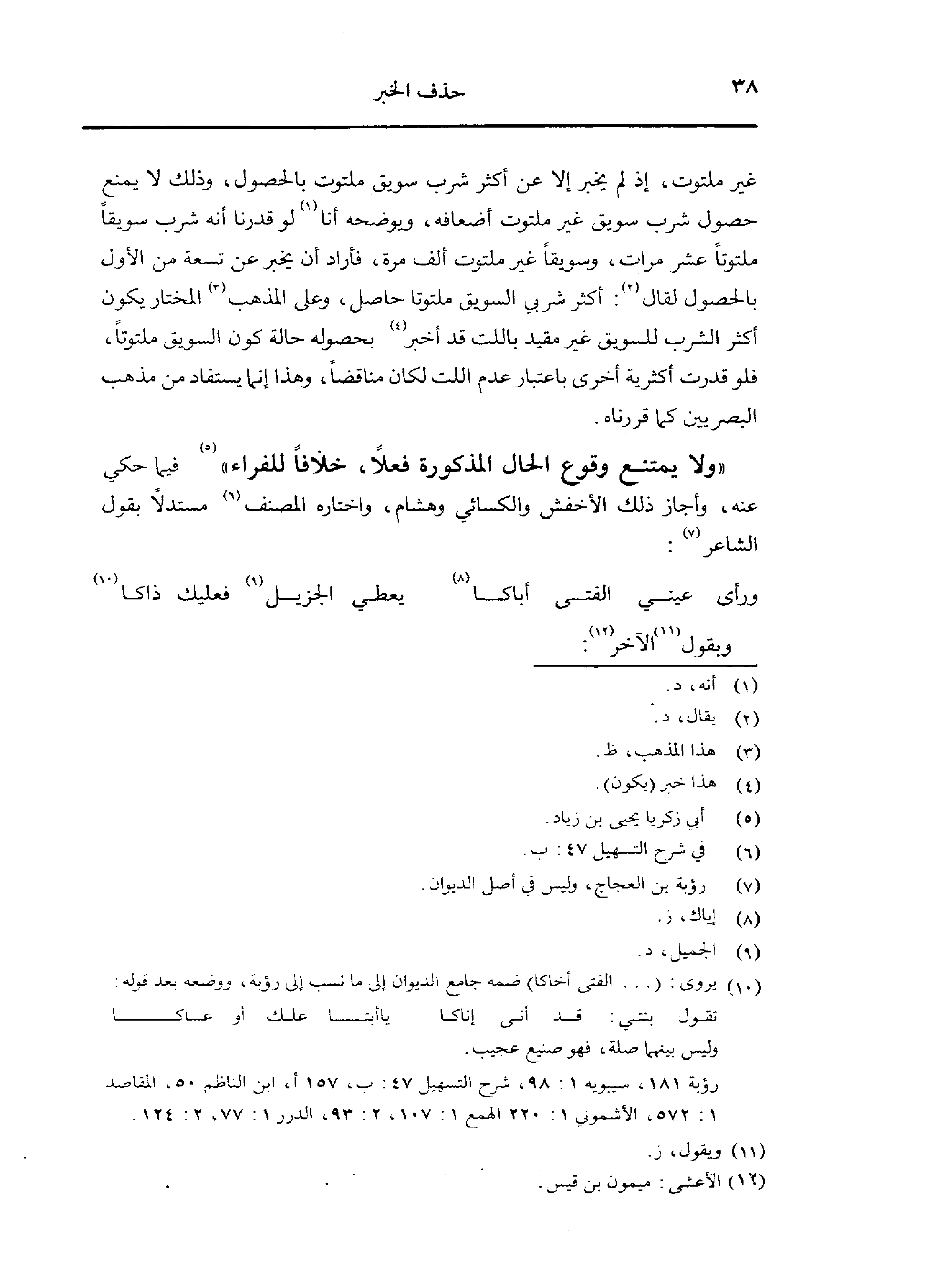 غير ملتوت، إذا لم يخبر إلا عن أكثر شرب سويق ملتوت بالحصول، وذلك لا يمنع حصول شرب سويق غير ملتوت أضعافه، ويوضحه أنا لو قدرنا أنه شرب سويقًا ملتوتًا عشر مرات، وسويقًا غير ملتوت ألف مرة، فأراد أن يخبر عن تسعة من الأول بالحصول لقال: أكثر شربي السويق ملتوتا حاصل، وعلى المذهب المختار يكون أكثر الشرب للسويق غير مقيد باللت قد أخبر بحصوله حالة كون السويق ملتوتًا، فلو قدرت أكثرية أخرى باعتبار عدم اللت لكان مناقضًا، وهذا إنما يستفاد من مذهب البصريين كما قررناه.