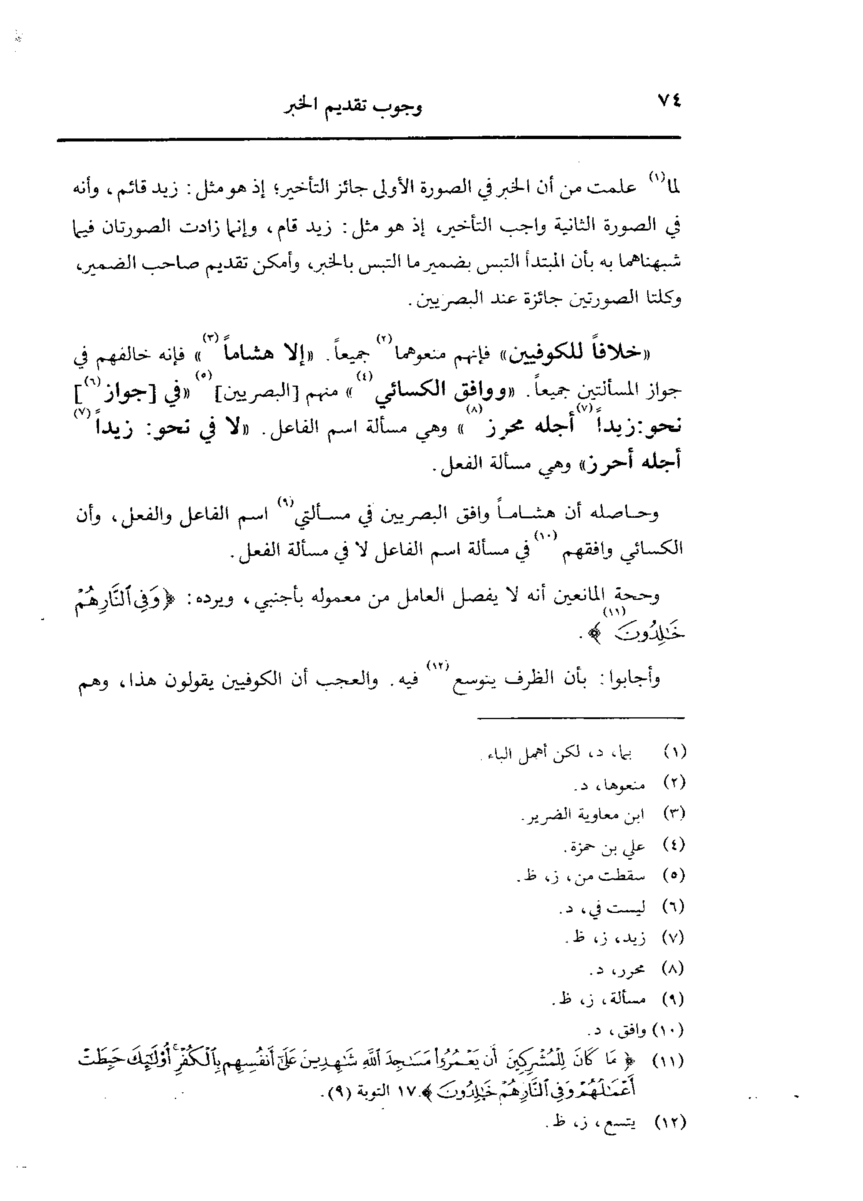 وحاصلة أن هشامًا وافق البصريين في مسألتي اسم الفاعل والفعل، وأن الكسائي وافقهم في مسألة اسم الفاعل لا في مسألة الفعل.