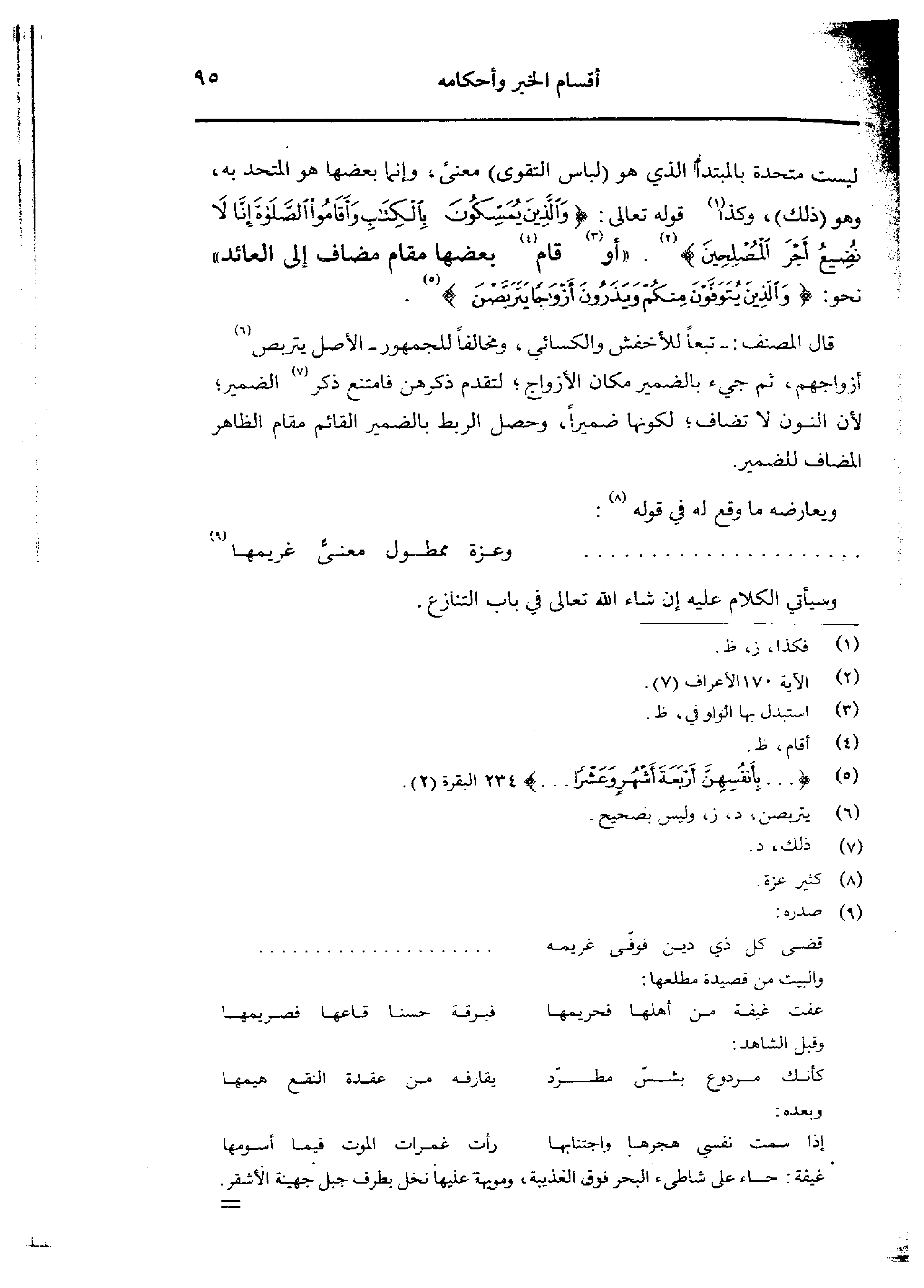 ليست متحدة بالمبتدأ الذي هو (لباس التقوى) معنىً، وإنما بعضها هو المتحد به، وهو (ذلك)، وكذا قوله تعالى: {والذين يمسكون بالكتاب وأقاموا الصلوات إنا لا نضيع أجر المصلين}. «أو قام بعضها مقام مضاف إلى العائد» نحو: {والذين يتوفون منكم ويذرون أزواجا يتربصن}.