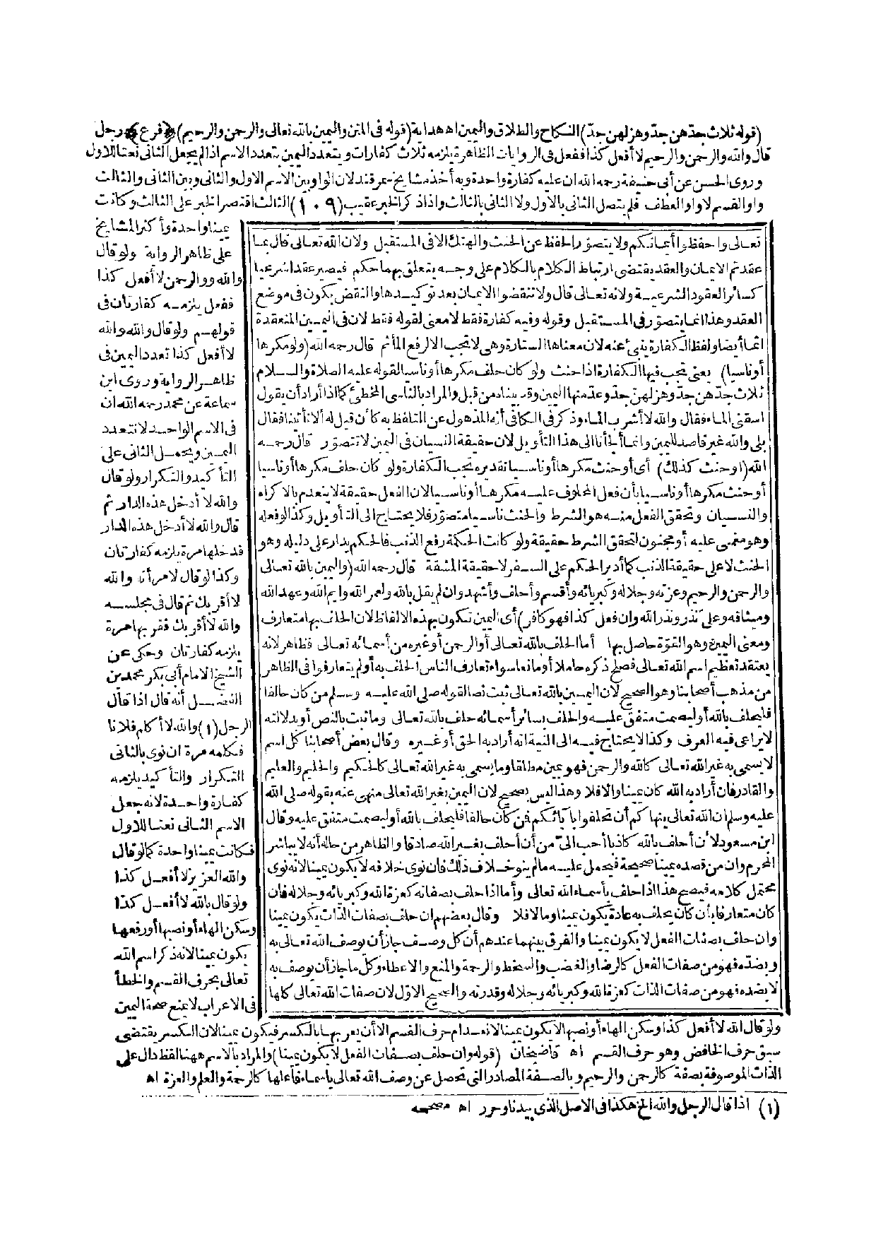(قَوْلُهُ فِي الْمَتْنِ وَالْيَمِينُ بِاَللَّهِ تَعَالَى وَالرَّحْمَنِ الرَّحِيمِ) {فَرْعٌ} رَجُلٌ قَالَ وَاَللَّهِ وَالرَّحْمَنِ وَالرَّحِيمِ لَا أَفْعَلُ كَذَا فَفَعَلَ فِي الرِّوَايَاتِ الظَّاهِرَةِ يَلْزَمُهُ ثَلَاثُ كَفَّارَاتٍ وَيَتَعَدَّدُ الْيَمِينُ بِتَعَدُّدِ الِاسْمِ إذَا لَمْ يَجْعَلْ الثَّانِيَ نَعْتًا لِلْأَوَّلِ وَرَوَى الْحَسَنُ عَنْ أَبِي حَنِيفَةَ - رَحِمَهُ اللَّهُ - أَنَّ عَلَيْهِ كَفَّارَةً وَاحِدَةً وَبِهِ أَخَذَ مَشَايِخُ سَمَرْقَنْدَ لِأَنَّ الْوَاوَ بَيْنَ الِاسْمِ الْأَوَّلِ وَالثَّانِي وَبَيْنَ الثَّانِي وَالثَّالِثِ وَاوُ الْقَسَمِ لَا وَاوُ الْعَطْفِ فَلَمْ يَتَّصِلْ الثَّانِي بِالْأَوَّلِ وَلَا الثَّانِي بِالثَّالِثِ وَإِذَا ذَكَرَ الْخَبَرَ عَقِيبَ الثَّالِثِ اقْتَصَرَ الْخَبَرُ عَلَى الثَّالِثِ وَكَانَتْ يَمِينًا وَاحِدَةً وَأَكْثَرُ الْمَشَايِخِ عَلَى ظَاهِرِ الرِّوَايَةِ