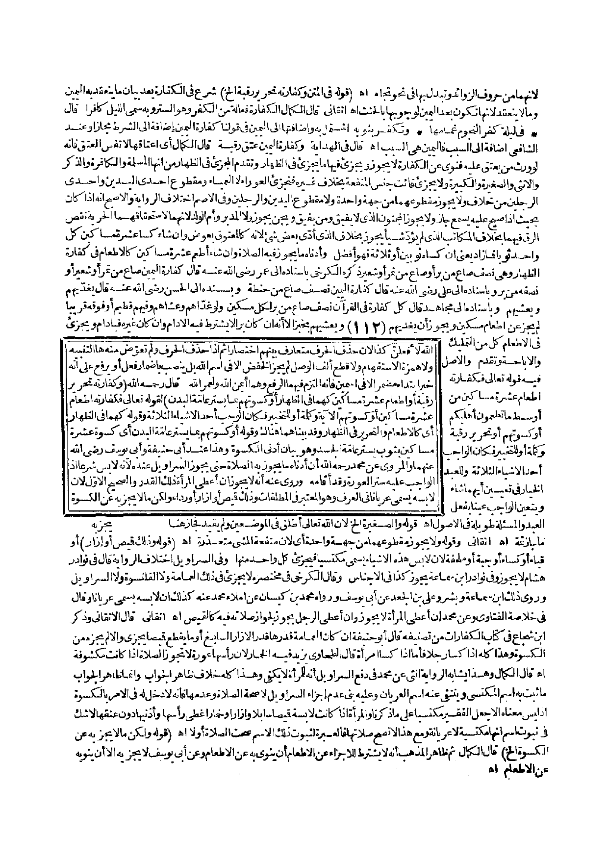 قَالَ الْأَتْقَانِيُّ وَذَكَرَ ابْنُ شُجَاعٍ فِي كِتَابِ الْكَفَّارَاتِ مِنْ تَصْنِيفِهِ قَالَ أَبُو حَنِيفَةَ إنْ كَانَ الْعِمَامَةُ قَدْرُهَا قَدْرُ الْإِزَارِ السَّابِغِ أَوْ مَا يُقْطَعُ قَمِيصًا يُجْزَى وَإِلَّا لَمْ يُجْزِهِ مِنْ الْكِسْوَةِ وَهَذَا كُلُّهُ إذَا كَسَا رَجُلًا فَأَمَّا إذَا كَسَا امْرَأَةً قَالَ الطَّحَاوِيُّ يَزِيدُ فِيهِ الْخِمَارَ لِأَنَّ رَأْسَهَا عَوْرَةٌ لَا تَجُوزُ الصَّلَاةُ إذَا كَانَتْ مَكْشُوفَةً اهـ قَالَ الْكَمَالُ وَهَذَا يُشَابِهُ الرِّوَايَةَ الَّتِي عَنْ مُحَمَّدٍ فِي دَفْعِ السَّرَاوِيلِ أَنَّهُ لِلْمَرْأَةِ لَا يَكْفِي وَهَذَا كُلُّهُ ظَاهِرُ الْجَوَابِ وَإِنَّمَا ظَاهِرُ الْجَوَابِ مَا ثَبَتَ بِهِ اسْمُ الْمُكْتَسِي وَيَنْتَفِي عَنْهُ اسْمُ الْعُرْيَانِ وَعَلَيْهِ بُنِيَ عَدَمُ إجْزَاءِ السَّرَاوِيلِ لَا صِحَّةُ الصَّلَاةِ وَعَدَمُهَا فَإِنَّهُ لَا دَخْلَ لَهُ فِي الْأَمْرِ بِالْكِسْوَةِ إذْ لَيْسَ مَعْنَاهُ إلَّا جَعْلَ الْفَقِيرِ مُكْتَسِيًا عَلَى مَا ذَكَرْنَا وَالْمَرْأَةُ إذَا كَانَتْ لَابِسَةً قَمِيصًا سَابِلًا وَإِزَارًا وَخِمَارًا غَطَّى رَأْسَهَا وَأُذُنَيْهَا دُونَ عُنُقِهَا لَا شَكَّ فِي ثُبُوتِ اسْمِ أَنَّهَا مُكْتَسِيَةٌ لَا عُرْيَانَةٌ وَمَعَ هَذَا لَا تَصِحُّ صَلَاتُهَا فَالْعِبْرَةُ لِثُبُوتِ ذَلِكَ الِاسْمِ صَحَّتْ الصَّلَاةُ أَوْ لَا اهـ