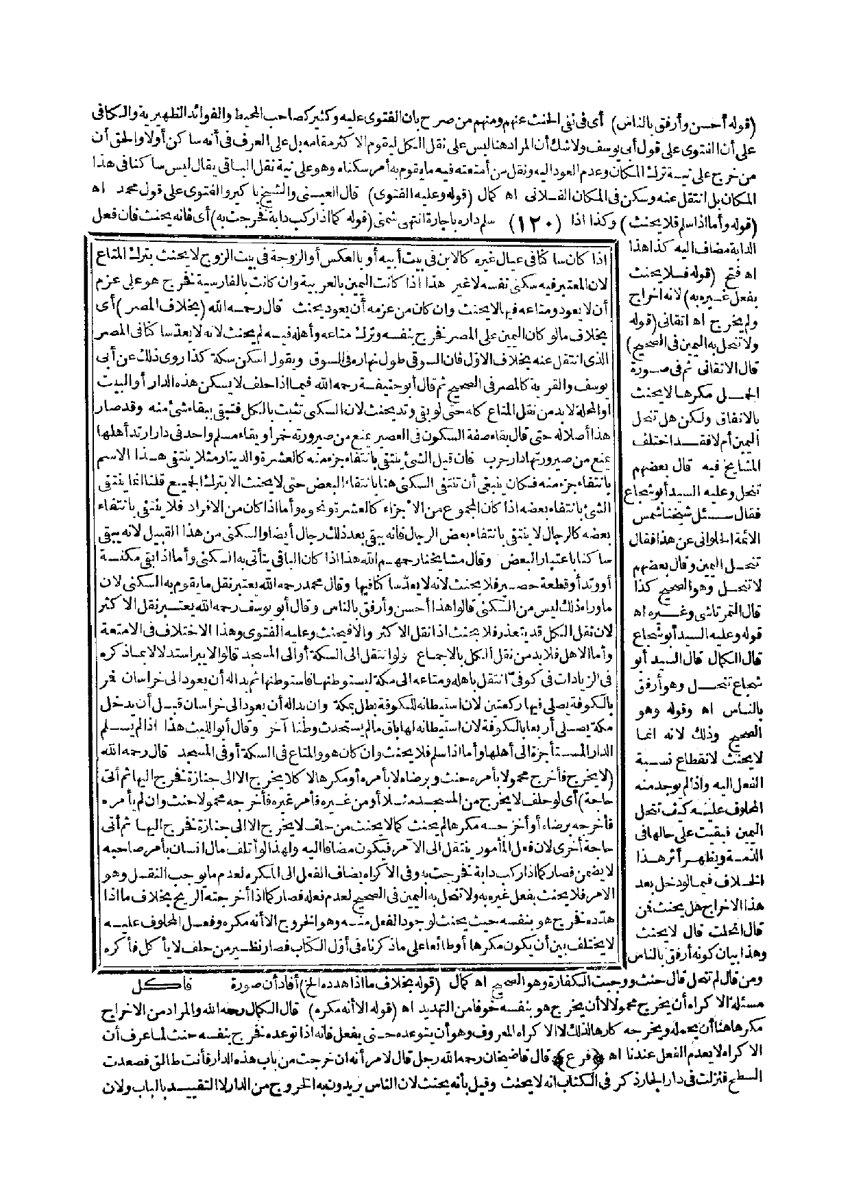 وَقَالَ مُحَمَّدٌ - رَحِمَهُ اللَّهُ - يُعْتَبَرُ نَقْلُ مَا يَقُومُ بِهِ السُّكْنَى لِأَنَّ مَا وَرَاءَ ذَلِكَ لَيْسَ مِنْ السُّكْنَى قَالُوا هَذَا أَحْسَنُ وَأَرْفَقُ بِالنَّاسِ وَقَالَ أَبُو يُوسُفَ - رَحِمَهُ اللَّهُ - يُعْتَبَرُ نَقْلُ الْأَكْثَرِ لِأَنَّ نَقْلَ الْكُلِّ قَدْ يَتَعَذَّرُ فَلَا يَحْنَثُ إذَا نُقِلَ الْأَكْثَرُ وَإِلَّا فَيَحْنَثُ وَعَلَيْهِ الْفَتْوَى وَهَذَا الِاخْتِلَافُ فِي الْأَمْتِعَةِ وَأَمَّا الْأَهْلُ فَلَا بُدَّ مِنْ نَقْلِ الْكُلِّ بِالْإِجْمَاعِ وَلَوْ انْتَقَلَ إلَى السِّكَّةِ أَوْ إلَى الْمَسْجِدِ قَالُوا لَا يَبَرُّ اسْتِدْلَالًا بِمَا ذَكَرَهُ فِي الزِّيَادَاتِ فِي كُوفِيٍّ انْتَقَلَ بِأَهْلِهِ وَمَتَاعِهِ إلَى مَكَّةَ لِيَسْتَوْطِنَهَا فَاسْتَوْطَنَهَا ثُمَّ بَدَا لَهُ أَنْ يَعُودَ إلَى خُرَاسَانَ فَمَرَّ بِالْكُوفَةِ يُصَلِّي فِيهَا رَكْعَتَيْنِ لِأَنَّ اسْتِيطَانَهُ لِلْكُوفَةِ بَطَلَ بِمَكَّةَ وَإِنْ بَدَا لَهُ أَنْ يَعُودَ إلَى خُرَاسَانَ قَبْلَ أَنْ يَدْخُلَ مَكَّةَ يُصَلِّي أَرْبَعًا بِالْكُوفَةِ لِأَنَّ اسْتِيطَانَهُ لَهَا بَاقٍ مَا لَمْ يَسْتَحْدِثْ وَطَنًا آخَرَ وَقَالَ أَبُو اللَّيْثِ هَذَا إذَا لَمْ يُسَلِّمْ الدَّارَ الْمُسْتَأْجَرَةَ إلَى أَهْلِهَا وَأَمَّا إذَا سَلَّمَ فَلَا يَحْنَثُ وَإِنْ كَانَ هُوَ وَالْمَتَاعُ فِي السِّكَّةِ أَوْ فِي الْمَسْجِدِ
