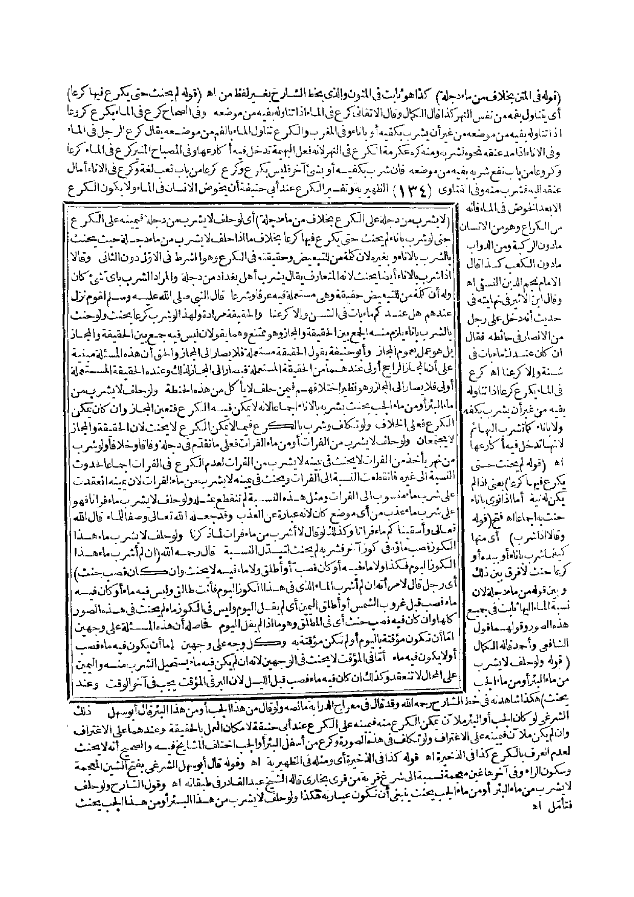 وَفِي الْفَتَاوَى الظَّهِيرِيَّةِ وَتَفْسِيرُ الْكَرْعِ عِنْدَ أَبِي حَنِيفَةَ أَنْ يَخُوضَ الْإِنْسَانُ فِي الْمَاءِ وَلَا يَكُونُ الْكَرْعُ إلَّا بَعْدَ الْخَوْضِ فِي الْمَاءِ فَإِنَّهُ مِنْ الْكُرَاعِ وَهُوَ مِنْ الْإِنْسَانِ مَا دُونَ الرُّكْبَةِ وَمِنْ الدَّوَابِّ مَا دُونَ الْكَعْبِ كَذَا قَالَ الْإِمَامُ نَجْمُ الدِّينِ النَّسَفِيُّ اهـ وَقَالَ ابْنُ الْأَثِيرِ فِي نِهَايَتِهِ فِي حَدِيثٍ «أَنَّهُ دَخَلَ عَلَى رَجُلٍ مِنْ الْأَنْصَارُ فِي حَائِطِهِ فَقَالَ إنْ كَانَ عِنْدَك مَاءٌ بَاتَ فِي شَنَّةٍ وَإِلَّا كَرَعْنَا» اهـ كَرَعَ فِي الْمَاءِ يَكْرَعُ كَرْعًا إذَا تَنَاوَلَهُ بِفِيهِ مِنْ غَيْرِ أَنْ يَشْرَبَ بِكَفِّهِ وَلَا بِإِنَاءٍ كَمَا تَشْرَبُ الْبَهَائِمُ لِأَنَّهَا تُدْخِلُ فِيهِ أَكَارِعُهَا. اهـ. (قَوْلُهُ لَمْ يَحْنَثْ حَتَّى يَكْرَعَ فِيهَا كَرْعًا) يَعْنِي إذَا لَمْ يَكُنْ لَهُ نِيَّةٌ أَمَّا إذَا نَوَى بِإِنَاءٍ حَنِثَ بِهِ إجْمَاعًا. اهـ. فَتْحٌ