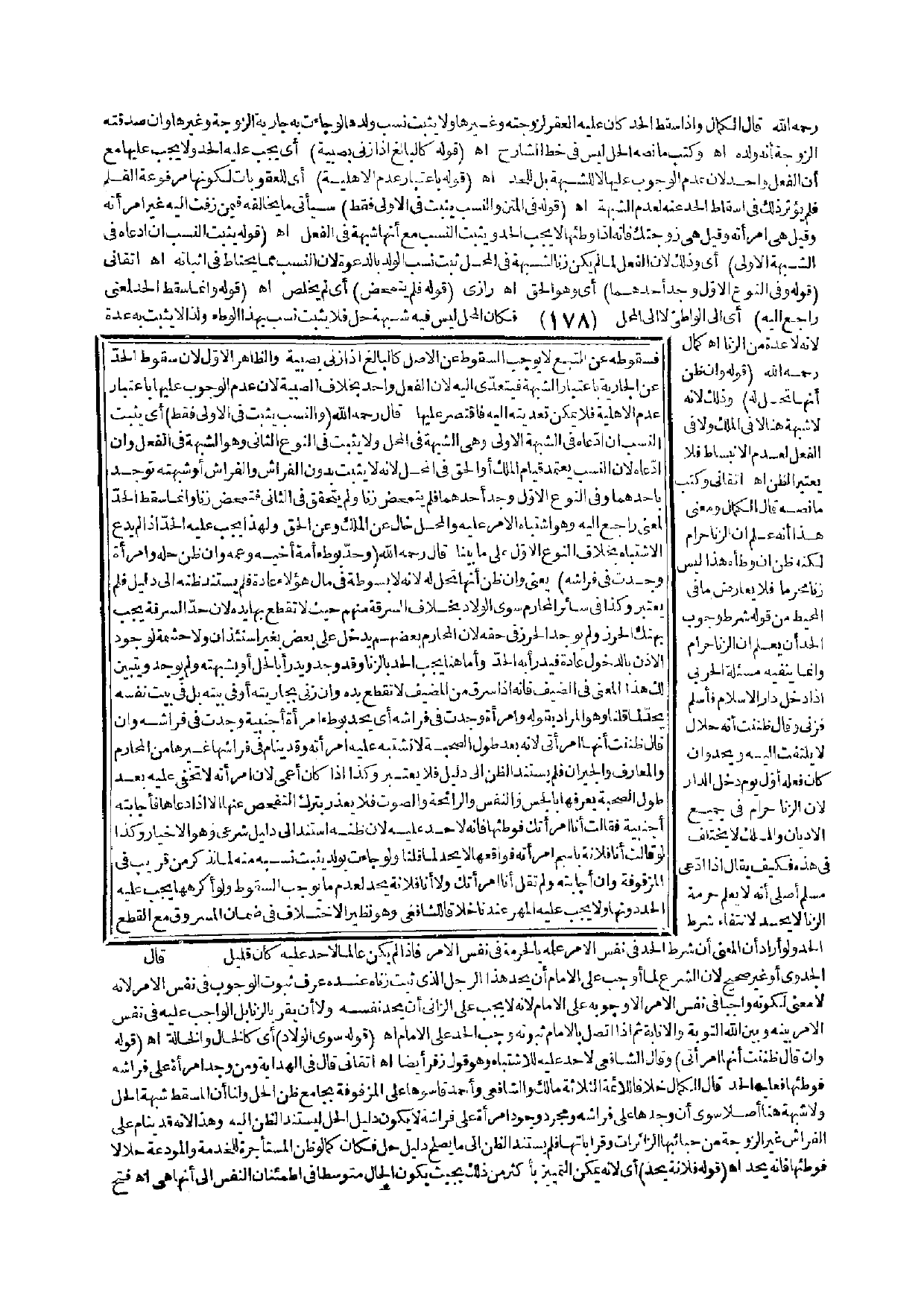 قَالَ الْكَمَالُ وَإِذَا سَقَطَ الْحَدُّ كَانَ عَلَيْهِ الْعُقْرُ لِزَوْجَتِهِ وَغَيْرِهَا وَلَا يَثْبُتُ نَسَبُ وَلَدِهَا لَوْ جَاءَتْ بِهِ جَارِيَةُ الزَّوْجَةِ وَغَيْرِهَا وَإِنْ صَدَّقَتْهُ الزَّوْجَةُ أَنَّهُ وَلَدُهُ اهـ وَكَتَبَ مَا نَصُّهُ الْحِلُّ لَيْسَ فِي خَطِّ الشَّارِحِ. اهـ. (قَوْلُهُ كَالْبَالِغِ إذَا زَنَى بِصَبِيَّةٍ) أَيْ يَجِبُ عَلَيْهِ الْحَدُّ وَلَا يَجِبُ عَلَيْهَا مَعَ أَنَّ الْفِعْلَ وَاحِدٌ لِأَنَّ عَدَمَ الْوُجُوبِ عَلَيْهَا لَا لِلشُّبْهَةِ بَلْ لِلْحَدِّ. اهـ. (قَوْلُهُ بِاعْتِبَارِ عَدَمِ الْأَهْلِيَّةِ) أَيْ لِلْعُقُوبَاتِ لِكَوْنِهَا مَرْفُوعَةَ الْقَلَمِ فَلَمْ يُؤَثِّرْ ذَلِكَ فِي إسْقَاطِ الْحَدِّ عَنْهُ لِعَدَمِ الشُّبْهَةِ. اهـ. (قَوْلُهُ فِي الْمَتْنِ وَالنَّسَبُ يَثْبُتُ فِي الْأُولَى فَقَطْ) سَيَأْتِي مَا يُخَالِفُهُ فِيمَنْ زُفَّتْ إلَيْهِ غَيْرُ امْرَأَتِهِ وَقِيلَ هِيَ امْرَأَتُهُ وَقِيلَ هِيَ زَوْجَتُك فَإِنَّهُ إذَا وَطِئَهَا لَا يَجِبُ الْحَدُّ وَيَثْبُتُ النَّسَبُ مَعَ أَنَّهَا شُبْهَةٌ فِي الْفِعْلِ. اهـ. (قَوْلُهُ يَثْبُتُ النَّسَبُ إنْ ادَّعَاهُ فِي الشُّبْهَةِ الْأُولَى) أَيْ وَذَلِكَ لِأَنَّ الْفِعْلَ لَمَّا لَمْ يَكُنْ زِنًا لِشُبْهَةٍ فِي الْمَحِلِّ ثَبَتَ نَسَبُ الْوَلَدِ بِالدَّعْوَةِ لِأَنَّ النَّسَبَ مِمَّا يُحْتَاطُ فِي إثْبَاتِهِ. اهـ. أَتْقَانِيٌّ