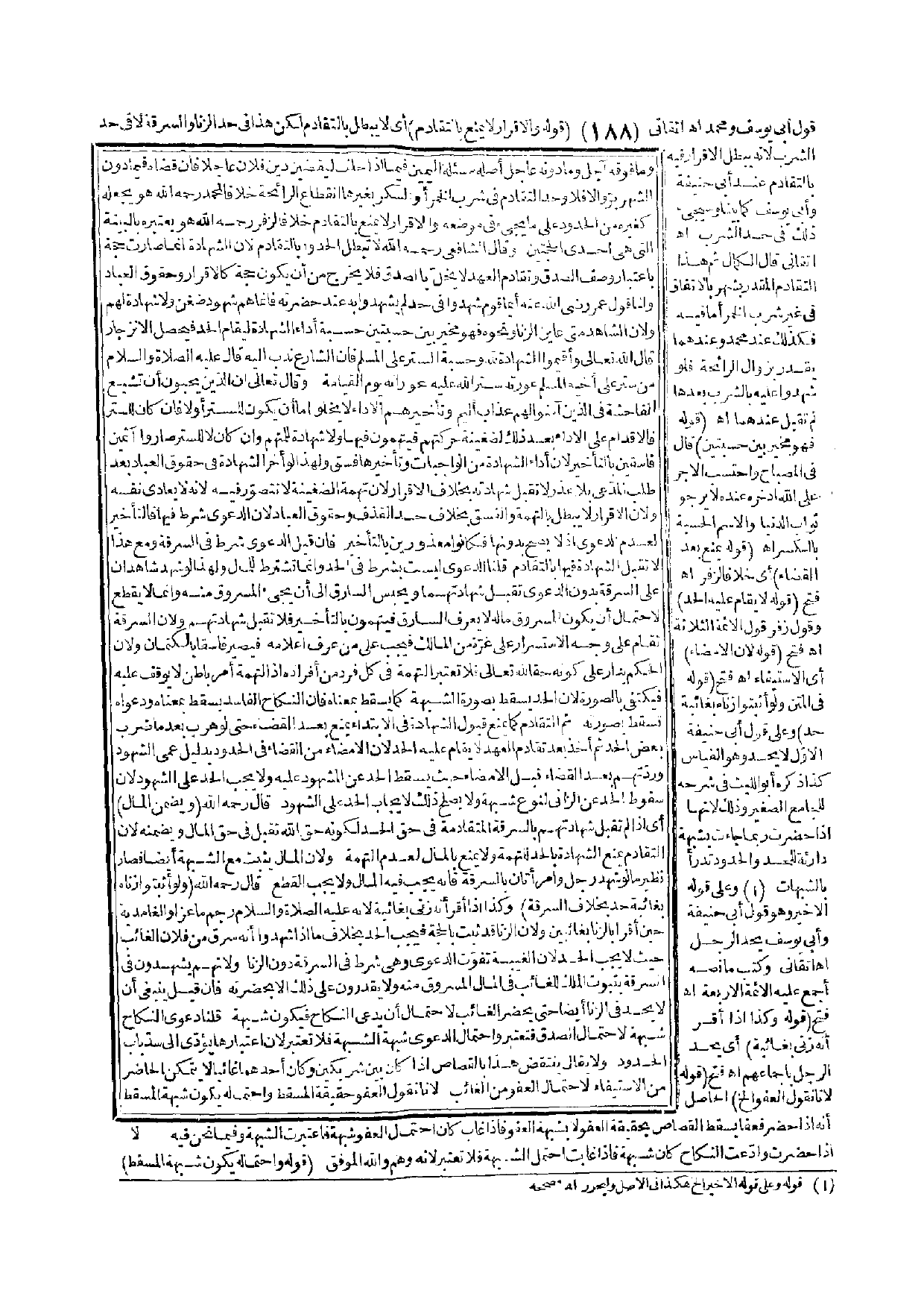 ـــــــــــــــــــــــــــــQقَوْلُ أَبِي يُوسُفَ وَمُحَمَّدٍ. اهـ. أَتْقَانِيٌّ (قَوْلُهُ وَالْإِقْرَارُ لَا يُمْنَعُ بِالتَّقَادُمِ) أَيْ لَا يَبْطُلُ بِالتَّقَادُمِ لَكِنَّ هَذَا فِي حَدِّ الزِّنَا وَالسَّرِقَةِ لَا فِي حَدِّ الشُّرْبِ لِأَنَّهُ يَبْطُلُ الْإِقْرَارُ فِيهِ بِالتَّقَادُمِ عِنْدَ أَبِي حَنِيفَةَ وَأَبِي يُوسُفَ كَمَا بَيَّنَّا وَسَيَجِيءُ ذَلِكَ فِي حَدِّ الشُّرْبِ. اهـ. أَتْقَانِيٌّ قَالَ الْكَمَالُ ثُمَّ هَذَا التَّقَادُمُ الْمُقَدَّرُ بِشَهْرٍ بِالِاتِّفَاقِ فِي غَيْرِ شُرْبِ الْخَمْرِ أَمَّا فِيهِ فَكَذَلِكَ عِنْدَ مُحَمَّدٍ وَعِنْدَهُمَا يُقَدَّرُ بِزَوَالِ الرَّائِحَةِ فَلَوْ شَهِدُوا عَلَيْهِ بِالشُّرْبِ بَعْدَهَا لَمْ تُقْبَلْ عِنْدَهُمَا. اهـ. (قَوْلُهُ فَهُوَ مُخَيَّرٌ بَيْنَ حِسْبَتَيْنِ) قَالَ فِي الْمِصْبَاحِ وَأَحْتَسِبُ الْأَجْرَ عَلَى اللَّهِ ادَّخَرَهُ عِنْدَهُ لَا يَرْجُو ثَوَابَ الدُّنْيَا، وَالِاسْمُ الْحِسْبَةُ بِالْكَسْرِ. اهـ. (قَوْلُهُ يُمْنَعُ بَعْدَ الْقَضَاءِ) أَيْ خِلَافًا لِزُفَرَ. اهـ. فَتْحٌ (قَوْلُهُ لَا يُقَامُ عَلَيْهِ الْحَدُّ) وَقَوْلُ زُفَرَ قَوْلُ الْأَئِمَّةِ الثَّلَاثَةِ. اهـ. فَتْحٌ (قَوْلُهُ لِأَنَّ الْإِمْضَاءَ) أَيْ الِاسْتِيفَاءَ. اهـ. فَتْحٌ (قَوْلُهُ فِي الْمَتْنِ وَلَوْ أَثْبَتُوا زِنَاهُ بِغَائِبَةٍ حُدَّ) وَعَلَى قَوْلِ أَبِي حَنِيفَةَ الْأَوَّلُ لَا يُحَدُّ وَهُوَ الْقِيَاسُ كَذَا ذَكَرَهُ أَبُو اللَّيْثِ فِي شَرْحِهِ لِلْجَامِعِ الصَّغِيرِ وَذَلِكَ لِأَنَّهَا إذَا حَضَرَتْ رُبَّمَا جَاءَتْ بِشُبْهَةٍ دَارِئَةٍ لِلْحَدِّ وَالْحُدُودُ تُدْرَأُ بِالشُّبُهَاتِ وَعَلَى قَوْلِهِ الْأَخِيرِ وَهُوَ قَوْلُ أَبِي حَنِيفَةَ وَأَبِي يُوسُفَ يُحَدُّ الرَّجُلُ. اهـ. أَتْقَانِيٌّ وَكَتَبَ مَا نَصُّهُ أَجْمَعَ عَلَيْهِ الْأَئِمَّةُ الْأَرْبَعَةُ. اهـ. فَتْحٌ (قَوْلُهُ وَكَذَا إذَا أَقَرَّ أَنَّهُ زَنَى بِغَائِبَةٍ) أَيْ يُحَدُّ الرَّجُلُ بِإِجْمَاعِهِمْ. اهـ. فَتْحٌ (قَوْلُهُ لِأَنَّا نَقُولُ الْعَفْوُ إلَخْ) الْحَاصِلُ أَنَّهُ إذَا حَضَرَ فَعَفَا يَسْقُطُ الْقِصَاصُ بِحَقِيقَةِ الْعَفْوِ لَا بِشُبْهَةِ الْعَفْوِ فَإِذَا غَابَ كَانَ احْتِمَالُ الْعَفْوِ شُبْهَةً فَاعْتُبِرَتْ الشُّبْهَةُ وَفِيمَا نَحْنُ فِيهِ إذَا حَضَرَتْ وَادَّعَتْ النِّكَاحَ كَانَ شُبْهَةً فَإِذَا غَابَتْ اُحْتُمِلَ الشُّبْهَةُ فَلَا تُعْتَبَرُ وَلِأَنَّهُ وَهْمٌ وَاَللَّهُ الْمُوَفِّقُ (قَوْلُهُ وَاحْتِمَالُهُ يَكُونُ شُبْهَةَ الْمُسْقِطِ)