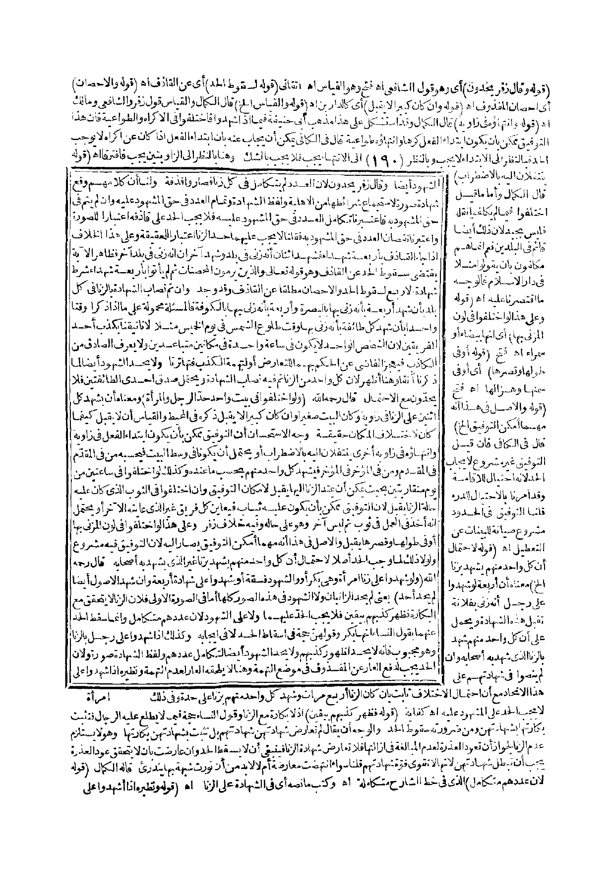 (قَوْلُهُ وَإِنْ كَانَ كَبِيرًا لَا يُقْبَلُ) أَيْ كَالدَّارَيْنِ. اهـ. (قَوْلُهُ وَالْقِيَاسُ إلَخْ) قَالَ الْكَمَالُ وَالْقِيَاسُ قَوْلُ زُفَرَ وَالشَّافِعِيِّ وَمَالِكٍ اهـ (قَوْلُهُ وَانْتِهَاؤُهُ فِي زَاوِيَةٍ) قَالَ الْكَمَالُ وَقَدْ اُسْتُشْكِلَ عَلَى هَذَا مَذْهَبُ أَبِي حَنِيفَةَ فِيمَا إذَا شَهِدُوا فَاخْتَلَفُوا فِي الْإِكْرَاهِ وَالطَّوَاعِيَةِ فَإِنَّ هَذَا التَّوْفِيقَ مُمْكِنٌ بِأَنْ يَكُونَ ابْتِدَاءُ الْفِعْلِ كُرْهًا وَانْتِهَاؤُهُ طَوَاعِيَةً قَالَ فِي الْكَافِي يُمْكِنُ أَنْ يُجَابَ عَنْهُ بِأَنَّ ابْتِدَاءَ الْفِعْلِ إذَا كَانَ عَنْ إكْرَاهٍ لَا يُوجِبُ الْحَدَّ فَبِالنَّظَرِ إلَى الِابْتِدَاءِ لَا يَجِبُ وَبِالنَّظَرِ إلَى الِانْتِهَاءِ يَجِبُ فَلَا يَجِبُ بِالشَّكِّ وَهُنَا بِالنَّظَرِ إلَى الزَّاوِيَتَيْنِ يَجِبُ فَافْتَرَقَا اهـ (قَوْلُهُ يَنْتَقِلَانِ إلَيْهِ بِالِاضْطِرَابِ) قَالَ الْكَمَالُ وَأَمَّا مَا قِيلَ اخْتَلَفُوا فِيمَا لَمْ يُكَلَّفُوا نَقْلَهُ فَلَيْسَ بِجَيِّدٍ لِأَنَّ ذَلِكَ أَيْضًا قَائِمٌ فِي الْبَلَدَيْنِ نَعَمْ إنَّمَا هُمْ مُكَلَّفُونَ بِأَنْ يَقُولُوا مَثَلًا فِي دَارِ الْإِسْلَامِ فَالْوَجْهُ مَا اُقْتُصِرَ عَلَيْهِ. اهـ. (قَوْلُهُ وَعَلَى هَذَا اخْتَلَفُوا فِي لَوْنِ الْمَزْنِيِّ بِهَا) أَيْ أَنَّهَا بَيْضَاءُ أَوْ سَمْرَاءُ. اهـ. فَتْحٌ (قَوْلُهُ أَوْ فِي طُولهَا وَقِصَرِهَا) أَيْ أَوْ فِي سِمَنِهَا وَهُزَالِهَا. اهـ. فَتْحٌ (قَوْلُهُ وَالْأَصْلُ فِي هَذَا أَنَّهُ مَهْمَا أَمْكَنَ التَّوْفِيقُ إلَخْ) قَالَ فِي الْكَافِي فَإِنْ قِيلَ التَّوْفِيقُ غَيْرُ مَشْرُوعٍ لِإِيجَابِ الْحَدِّ لِأَنَّهُ احْتِيَالٌ لِلْإِقَامَةِ وَقَدْ أُمِرْنَا بِالِاحْتِيَالِ لِلدَّرْءِ قُلْنَا التَّوْفِيقُ فِي الْحُدُودِ مَشْرُوعٌ صِيَانَةً لِلْبَيِّنَاتِ عَنْ التَّعْطِيلِ. اهـ. (قَوْلُهُ لِاحْتِمَالِ أَنَّ كُلَّ وَاحِدٍ مِنْهُمْ يَشْهَدُ بِزِنًا إلَخْ) مَعْنَاهُ أَنَّ أَرْبَعَةً لَوْ شَهِدُوا عَلَى رَجُلٍ أَنَّهُ زَنَى بِفُلَانَةَ تُقْبَلُ هَذِهِ الشَّهَادَةُ وَيُحْمَلُ عَلَى أَنَّ كُلَّ وَاحِدٍ مِنْهُمْ شَهِدَ بِالزِّنَا الَّذِي يَشْهَدُ بِهِ أَصْحَابُهُ وَإِنْ لَمْ يَنُصُّوا فِي شَهَادَتِهِمْ عَلَى هَذَا الِاتِّحَادِ مَعَ أَنَّ احْتِمَالَ الِاخْتِلَافِ ثَابِتٌ بِأَنْ كَانَ الزِّنَا أَرْبَعَ مَرَّاتٍ وَشَهِدَ كُلُّ وَاحِدٍ مِنْهُمْ بِزِنًا عَلَى حِدَةٍ وَفِي ذَلِكَ لَا يَجِبُ الْحَدُّ عَلَى الْمَشْهُودِ عَلَيْهِ اهـ كِفَايَةٌ.