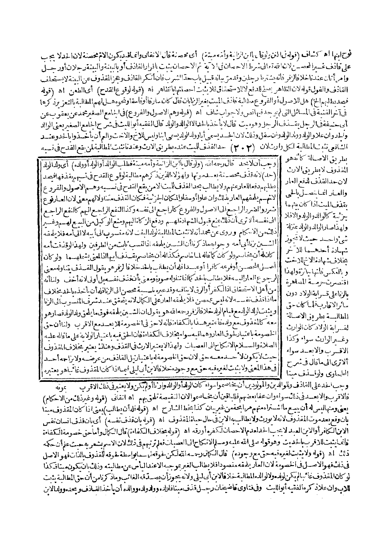 (قَوْلُهُ فِي الْمَتْنِ وَلَوْ قَالَ يَا ابْنَ الزَّانِيَةِ وَأُمُّهُ مَيِّتَةٌ) أَيْ مُحْصَنَةٌ قَالَ الْأَتْقَانِيُّ وَإِنَّمَا قُيِّدَ بِكَوْنِ الْأُمِّ مُحْصَنَةً لِأَنَّ الْحَدَّ لَا يَجِبُ عَلَى قَاذِفِ غَيْرِ الْمُحْصَنِ لِأَنَّ اللَّهَ تَعَالَى شَرَطَ الْإِحْصَانَ فِي الْآيَةِ ثُمَّ الْإِحْصَانُ يَثْبُتُ بِإِقْرَارِ الْقَاذِفِ أَوْ بِالْبَيِّنَةِ وَالْبَيِّنَةُ رَجُلَانِ أَوْ رَجُلٌ وَامْرَأَتَانِ عِنْدَنَا خِلَافًا لِزُفَرَ فَإِنَّهُ يَشْتَرِطُ رَجُلَيْنِ وَقَدْ مَرَّ بَيَانُهُ قُبَيْلَ بَابِ الْحَدِّ فَإِنْ أَنْكَرَ الْقَاذِفُ وَعَجَزَ الْمَقْذُوفُ عَنْ الْبَيِّنَةِ لَا يَسْتَحْلِفُ الْقَاذِفَ وَالْقَوْلُ قَوْلُهُ لِأَنَّ الظَّاهِرَ يَصْلُحُ لِلدَّفْعِ لَا لِلِاسْتِحْقَاقِ فَلَا يَثْبُتُ إحْصَانُهَا بِالظَّاهِرِ. اهـ. (قَوْلُهُ لِوُقُوعِ الْقَدْحِ) أَيْ الطَّعْنِ. اهـ. (قَوْلُهُ فَيُحَدُّ بِطَلَبِهِمْ إلَخْ) هَلْ لِلْأُصُولِ أَوْ الْفُرُوعِ مُطَالَبَةُ قَاذِفِ الْمَيِّتِ بِغَيْرِ الزِّنَا بِأَنْ قَالَ كَانَ سَارِقًا أَوْ فَاسِقًا أَوْ نَحْوَهُ هَلْ لَهُمْ الْمُطَالَبَةُ بِالتَّعْزِيرِ ذَكَرَهَا فِي آخِرِ الْقُنْيَةِ فِي الْمَسَائِلِ الَّتِي لَمْ يُوجَدْ فِيهَا نَصٌّ وَلَا جَوَابٌ شَافٍ. اهـ. (قَوْلُهُ وَهُمْ الْأُصُولُ وَالْفُرُوعُ) فِي الْجَامِعِ الصَّغِيرِ مُحَمَّدٌ عَنْ يَعْقُوبَ عَنْ أَبِي حَنِيفَةَ فِي الرَّجُلِ يَقْذِفُ الرَّجُلَ وَهُوَ مَيِّتٌ قَالَ لَا يَأْخُذُ بِالْحَدِّ إلَّا الْوَالِدُ وَالْوَلَدُ قَالَ الْفَقِيهُ أَبُو اللَّيْثِ فِي شَرْحِ الْجَامِعِ الصَّغِيرِ يَعْنِي الْوَالِدَ وَالْجَدَّ وَإِنْ عَلَا وَالْوَلَدَ وَوَلَدَ الْوَلَدِ وَإِنْ سَفَلَ وَذَلِكَ لِأَنَّ الْجَدَّ يُسَمَّى أَبًا وَوَلَدَ الْوَلَدِ يُسَمَّى ابْنًا وَلَيْسَ لِلْأَخِ وَالْأُخْتِ وَالْعَمِّ أَنْ يَأْخُذُوا بِالْحَدِّ وَعِنْدَ الشَّافِعِيِّ تَثْبُتُ الْمُطَالَبَةُ لِكُلِّ وَارِثٍ لِأَنَّ حَدَّ الْقَذْفِ لِلْمَيِّتِ عِنْدَهُ بِطَرِيقِ الْإِرْثِ وَعِنْدَنَا تَثْبُتُ الْمُطَالَبَةُ لِمَنْ يَقَعُ الْقَدْحُ فِي نَسَبِهِ بِطَرِيقِ الْأَصَالَةِ كَأَنَّهُ هُوَ الْمَقْذُوفُ لَا بِطَرِيقِ الْإِرْثِ لِأَنَّ حَدَّ الْقَذْفِ لِدَفْعِ الْعَارِ وَالْعَارُ إنَّمَا يَتَّصِلُ بِالْحَيِّ بِقَذْفِ الْمَيِّتِ إذَا كَانَ بَيْنَهُمَا جُزْئِيَّةٌ كَالْوَالِدِ وَالْوَلَدِ وَإِلَّا فَلَا وَلِهَذَا صَارَ الْوَالِدُ وَالْوَلَدُ بِمَنْزِلَةِ شَيْءٍ وَاحِدٍ حَيْثُ لَا يَجُوزُ شَهَادَةُ أَحَدِهِمَا لِلْآخَرِ بِخِلَافِ شَهَادَةِ الْأَخِ لِلْأُخْتِ وَبِالْعَكْسِ فَإِنَّهَا جَائِزَةٌ وَلِهَذَا اقْتَصَرَتْ حُرْمَةُ الْمُصَاهَرَةِ بِالزِّنَا عَلَى قَرَابَةِ الْوِلَادِ دُونَ سَائِرِ الْأَقَارِبِ فَلَمَّا كَانَ حَقُّ الْمُطَالَبَةِ بِطَرِيقِ الْأَصَالَةِ لِقَرَابَةِ الْوِلَادِ كَانَ الْوَارِثُ وَغَيْرُ الْوَارِثِ سَوَاءً وَكَذَا الْأَقْرَبُ وَالْأَبْعَدُ سَوَاءً أَلَا تَرَى إلَى مَا قَالَ فِي شَرْحِ الطَّحَاوِيِّ وَلَوْ قَذَفَ مَيِّتًا وَجَبَ الْحَدُّ عَلَى الْقَاذِفِ وَلِلْوَالِدَيْنِ وَالْمَوْلُودِينَ أَنْ يُخَاصِمُوا سَوَاءٌ كَانَ الْوَلَدُ أَوْ الْوَالِدُ وَارِثًا أَوْ لَمْ يَكُنْ وَلَا يُعْتَبَرُ فِي ذَلِكَ الْأَقْرَبُ فَالْأَقْرَبُ وَالْأَبْعَدُ فِي ذَلِكَ سَوَاءٌ وَإِنْ عَفَا بَعْضُهُمْ فَلِلْبَاقِينَ أَنْ يُخَاصِمُوا لِأَنَّ النَّقِيصَةَ تَلْحَقُ بِهِمْ. اهـ. أَتْقَانِيٌّ (قَوْلُهُ وَغَيْرَ ذَلِكَ مِنْ الْأَحْكَامِ) يَعْنِي وَمِنْهَا لَيْسَ لَهُ أَنْ يَبِيعَ مَا اشْتَرَاهُ مِنْهُمْ مُرَابَحَةً مِنْ غَيْرِ بَيَانٍ، كَذَا بِخَطِّ الشَّارِحِ اهـ (قَوْلُهُ فَلَهُ أَنْ يُط