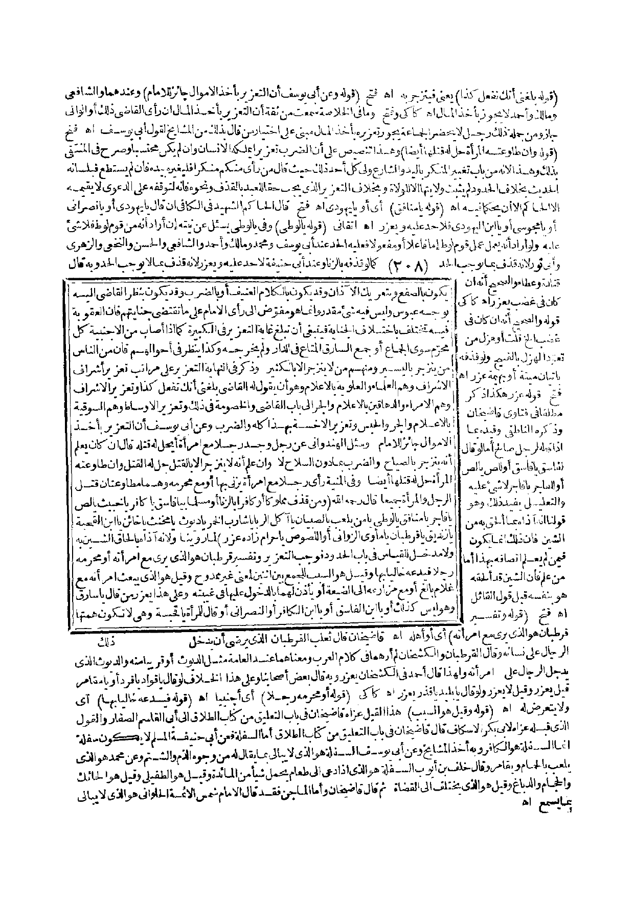 وَمِنْهُمْ مَنْ لَا يَنْزَجِرُ إلَّا بِالْكَثِيرِ وَذَكَرَ فِي النِّهَايَةِ التَّعْزِيرُ عَلَى مَرَاتِبَ تَعْزِيرُ أَشْرَافِ الْأَشْرَافِ وَهُمْ الْعُلَمَاءُ وَالْعَلَوِيَّةُ، بِالْإِعْلَامِ وَهُوَ أَنْ يَقُولَ لَهُ الْقَاضِي بَلَغَنِي أَنَّك تَفْعَلُ كَذَا وَتَعْزِيرُ الْأَشْرَافِ وَهُمْ الْأُمَرَاءُ وَالدَّهَاقِينُ بِالْإِعْلَامِ وَالْجَرِّ إلَى بَابِ الْقَاضِي وَالْخُصُومَةِ فِي ذَلِكَ وَتَعْزِيرُ الْأَوْسَاطِ وَهُمْ السُّوقِيَّةُ بِالْإِعْلَامِ وَالْجَرِّ وَالْحَبْسِ وَتَعْزِيرُ الْأَخِسَّةِ بِهَذَا كُلِّهِ وَالضَّرْبِ وَعَنْ أَبِي يُوسُفَ أَنَّ التَّعْزِيرَ بِأَخْذِ الْأَمْوَالِ جَائِزٌ لِلْإِمَامِ وَسُئِلَ الْهِنْدُوَانِيُّ عَنْ رَجُلٍ وَجَدَ رَجُلًا مَعَ امْرَأَةٍ يَحِلُّ لَهُ قَتْلُهُ قَالَ إنْ كَانَ يَعْلَمُ أَنَّهُ يَنْزَجِرُ بِالصِّيَاحِ وَالضَّرْبِ بِمَا دُونَ السِّلَاحِ لَا وَإِنْ عَلِمَ أَنَّهُ لَا يَنْزَجِرُ إلَّا بِالْقَتْلِ حَلَّ لَهُ الْقَتْلُ وَإِنْ طَاوَعَتْهُ الْمَرْأَةُ حَلَّ لَهُ قَتْلُهَا أَيْضًا وَفِي الْمُنْيَةِ رَأَى رَجُلًا مَعَ امْرَأَةٍ يَزْنِي بِهَا أَوْ مَعَ مَحْرَمِهِ وَهُمَا مُطَاوِعَتَانِ قَتَلَ الرَّجُلَ وَالْمَرْأَةَ جَمِيعًا.