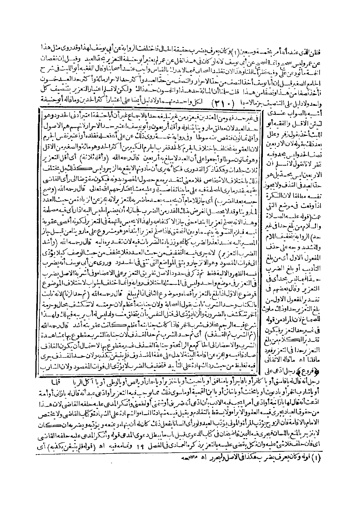 وَفِيهِ نَظَرٌ لِمَا قُلْنَا وَهَذَا لِأَنَّ تَقْلِيدَ الصَّحَابِيِّ فِيمَا لَا يُدْرَكُ بِالْقِيَاسِ وَاجِبٌ عِنْدَ أَصْحَابِنَا وَقَالَ الْفَقِيهُ أَبُو اللَّيْثِ فِي شَرْحِ الْجَامِعِ الصَّغِيرِ قِيلَ إنَّ أَبَا يُوسُفَ أَخَذَ النِّصْفَ مِنْ حَدِّ الْأَحْرَارِ وَالنِّصْفَ مِنْ حَدِّ الْعَبِيدِ وَأَكْثَرُ حَدِّ الْأَحْرَارِ مِائَةٌ وَأَكْثَرُ حَدِّ الْعَبِيدِ خَمْسُونَ فَأَخَذَ نِصْفًا مِنْ هَذَا وَنِصْفًا مِنْ هَذَا قُلْت سَلَّمْنَا أَنَّ الْمِائَةَ حَدُّ هَذَا وَالْخَمْسُونَ حَدُّ ذَاكَ وَلَكِنْ لَا نُسَلِّمُ اعْتِبَارَ التَّعْزِيرِ بِتَنْصِيفِ كُلِّ وَاحِدٍ وَلَا دَلِيلَ عَلَى التَّنْصِيفِ جَزْمًا لَا سِيَّمَا لِكُلِّ وَاحِدٍ مِنْهُمَا وَلَا دَلِيلَ أَيْضًا عَلَى اعْتِبَارِ أَكْثَرِ الْحَدَّيْنِ وَمَا قَالَهُ أَبُو حَنِيفَةَ أَشْبَهُ بِالصَّوَابِ عِنْدِي لِتَيَقُّنِ الْأَقَلِّ وَالْفَقِيهُ أَبُو اللَّيْثِ أَخَذَ بِقَوْلِ زُفَرَ وَعَلَّلَ بَعْدَ ذَلِكَ بِقَوْلِهِ لِأَنَّ الْأَرْبَعِينَ نِصْفُ الْحَدِّ وَلَيْسَ بِحَدٍّ وَفِيهِ نَظَرٌ لِأَنَّا نَقُولُ لَا نُسَلِّمُ أَنَّ الْأَرْبَعِينَ لَيْسَ بِحَدٍّ بَلْ هُوَ حَدُّ الْعَبْدِ فِي الْقَذْفِ وَلَا يَجُوزُ نَفْيُهُ مُطْلَقًا لِأَنَّ النَّكِرَةَ إذَا وَقَعَتْ فِي مَوْضِعِ النَّفْيِ عَمَّتْ