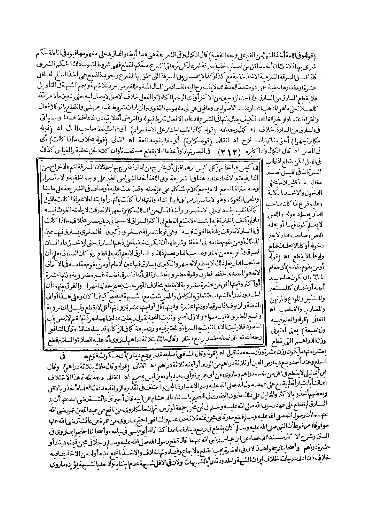 (قَوْلُهُ أَوْ مَنْ يَقُومُ مَقَامَهُ) أَيْ مَقَامَ الْمَالِكِ بِأَنْ يَكُونَ صَاحِبَ يَدِ أَمَانَةٍ أَوْ ضَمَانٍ كَالْمُسْتَعِيرِ وَالْمُسْتَأْجِرِ وَالْمُودِعِ وَالْمُرْتَهِنِ وَالْمُضَارِبِ وَالْغَاصِبِ. اهـ. أَتْقَانِيٌّ (قَوْلُهُ وَالْمُعْتَبَرُ فِيهِ وَزْنُ سَبْعَةٍ) يَعْنِي الْمُعْتَبَرُ فِي وَزْنِ الدَّرَاهِمِ الَّتِي يُقْطَعُ بِعَشَرَةٍ مِنْهَا مَا يَكُونُ وَزْنُ عَشَرَةٍ وَزْنَ سَبْعَةِ مَثَاقِيلَ. اهـ. (قَوْلُهُ وَقَالَ الشَّافِعِيُّ نِصَابُهُ مُقَدَّرٌ بِرُبْعِ دِينَارٍ) أَيْ مَسْكُوكٌ يُقَوَّمُ بِهِ السِّلَعُ وَعِنْدَ أَحْمَدَ رُبْعُ دِينَارٍ مِنْ الْعَيْنِ أَوْ ثَلَاثَةُ دَرَاهِمَ مِنْ الْوَرِقِ أَوْ قِيمَتُهُ ثَلَاثَةُ دَرَاهِمَ. اهـ. أَتْقَانِيٌّ (قَوْلُهُ وَقَالَ مَالِكٌ بِثَلَاثَةِ دَرَاهِمَ) وَقَالَ ابْنُ أَبِي لَيْلَى لَا يُقْطَعُ فِي أَقَلَّ مِنْ خَمْسَةِ دَرَاهِمَ وَمَا رُوِيَ عَنْ أَبِي هُرَيْرَةَ وَأَبِي سَعِيدٍ بِأَرْبَعِينَ لَيْسَ بِصَحِيحٍ. اهـ. أَتْقَانِيٌّ - رَحِمَهُ اللَّهُ - ثُمَّ هَذَا الِاخْتِلَافُ إنَّمَا نَشَأَ بِاعْتِبَارِ أَنَّهُ لَمْ يُقْطَعْ عَلَى عَهْدِ رَسُولِ اللَّهِ - صَلَّى اللَّهُ عَلَيْهِ وَسَلَّمَ - إلَّا يَدُ سَارِقِ الْمِجَنِّ وَاخْتَلَفَ فِي تَقْدِيرِهِ الرُّوَاةُ فَبَعْدَ ذَلِكَ الْعُلَمَاءُ أَخَذُوا بِالْأَقَلِّ وَبَعْضُهُمْ أَخَذُوا بِالْأَكْثَرِ وَالدَّلِيلُ عَلَى ذَلِكَ مَا رَوَى الْبُخَارِيُّ فِي الصَّحِيحِ بِإِسْنَادِهِ إلَى هِشَامٍ عَنْ أَبِيهِ قَالَ أَخْبَرَتْنِي عَائِشَةُ - رَضِيَ اللَّهُ عَنْهَا - أَنَّ يَدَ السَّارِقِ لَمْ تُقْطَعْ عَلَى عَهْدِ رَسُولِ اللَّهِ - صَلَّى اللَّهُ عَلَيْهِ وَسَلَّمَ - فِي ثَمَنِ مِجَنٍّ حَجَفَةٍ أَوْ تُرْسٍ ثُمَّ إنَّ مَالِكًا رَوَى عَنْ نَافِعٍ عَنْ عَبْدِ اللَّهِ بْنِ عُمَرَ - رَضِيَ اللَّهُ عَنْهُمَا - أَنَّ رَسُولَ اللَّهِ - صَلَّى اللَّهُ عَلَيْهِ وَسَلَّمَ - «قَطَعَ سَارِقًا فِي مِجَنٍّ ثَمَنُهُ ثَلَاثَةُ دَرَاهِمَ»