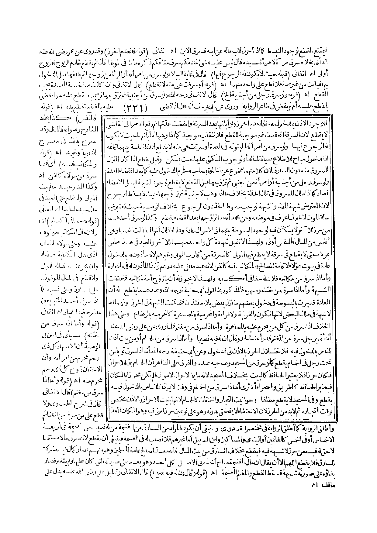 وَعَلَى هَذَا الْخِلَافِ إذَا سَرَقَ مِنْ كُلِّ مَنْ يَحْرُمُ عَلَيْهِ بِالْمُصَاهَرَةِ وَأَمَّا إذَا سَرَقَ مِنْ مَغْنَمٍ فَلِمَا رُوِيَ عَنْ عَلِيٍّ - رَضِيَ اللَّهُ عَنْهُ - أَنَّهُ أَتَى بِرَجُلٍ مِنْ الْمَغْنَمِ فَدَرَأَ عَنْهُ الْحَدَّ وَقَالَ إنَّ لَهُ فِيهِ نَصِيبًا وَأَمَّا إذَا سَرَقَ مِنْ الْحَمَّامِ أَوْ مِنْ بَيْتٍ أُذِنَ لِلنَّاسِ بِالدُّخُولِ فِيهِ فَلِاخْتِلَالِ الْحِرْزِ بِالْإِذْنِ فِي الدُّخُولِ وَعَنْ أَبِي حَنِيفَةَ - رَحِمَهُ اللَّهُ - أَنَّهُ إذَا سَرَقَ ثَوْبًا مِنْ تَحْتِ رَجُلٍ فِي الْحَمَّامِ يُقْطَعُ كَمَا لَوْ سَرَقَ مِنْ الْمَسْجِدِ وَصَاحِبُهُ عِنْدَهُ وَالْفَرْقُ عَلَى الظَّاهِرِ أَنَّ الْحَمَّامَ بُنِيَ لِلْإِحْرَازِ فَكَانَ حِرْزًا فَلَا يُعْتَبَرُ الْحَافِظُ كَالْبَيْتِ بِخِلَافِ الْمَسْجِدِ لِأَنَّهُ مَا بُنِيَ لِإِحْرَازِ الْأَمْوَالِ فَلَمْ يَكُنْ مُحْرِزًا بِالْمَكَانِ فَيُعْتَبَرُ الْحَافِظُ كَالطَّرِيقِ وَالصَّحْرَاءِ