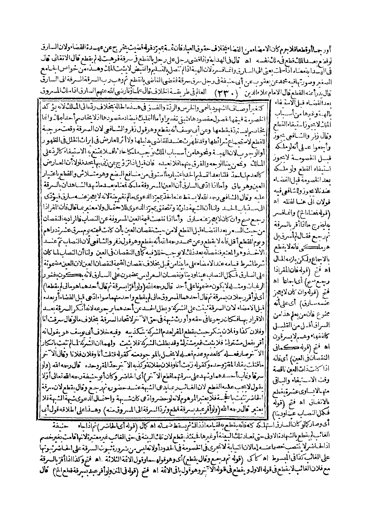 (قَوْلُهُ أَيْ الْحَاضِرِ) ثُمَّ إذَا جَاءَ الْغَائِبُ لَمْ يُقْطَعْ بِالشَّهَادَةِ الْأُولَى حَتَّى تُعَادَ تِلْكَ الْبَيِّنَةُ أَوْ غَيْرُهَا فَحِينَئِذٍ يُقْطَعُ لِأَنَّ تِلْكَ الْبَيِّنَةَ فِي حَقِّ الْغَائِبِ غَيْرُ مُعْتَبَرَةٍ لِأَنَّهَا قَامَتْ بِغَيْرِ خَصْمٍ إذْ الْحَاضِرُ لَا يَنْتَصِبُ خَصْمًا عَنْهُ إمَّا لِأَنَّ النِّيَابَةَ لَا تَجْرِي فِي الْخُصُومَةِ فِي الْحُدُودِ أَوْ لِأَنَّهُ لَيْسَ مِنْ ضَرُورَةِ ثُبُوتِ السَّرِقَةِ عَلَى الْحَاضِرِ ثُبُوتُهَا عَلَى الْغَائِبِ كَذَا فِي الْمَبْسُوطِ. اهـ. كَاكِيٌّ (قَوْلُهُ ثُمَّ رَجَعَ وَقَالَ يُقْطَعُ) أَيْ وَهُوَ قَوْلُهُمَا وَقَوْلُ الْأَئِمَّةِ الثَّلَاثَةِ. اهـ. فَتْحٌ وَكَذَا إذَا أَقَرَّ بِالسَّرِقَةِ مَعَ فُلَانٍ الْغَائِبِ لَا يُقْطَعُ فِي قَوْلِهِ الْأَوَّلِ وَيُقْطَعُ فِي قَوْلِهِ الْآخَرِ وَهُوَ قَوْلُ بَاقِي الْأَئِمَّةِ. اهـ. فَتْحٌ