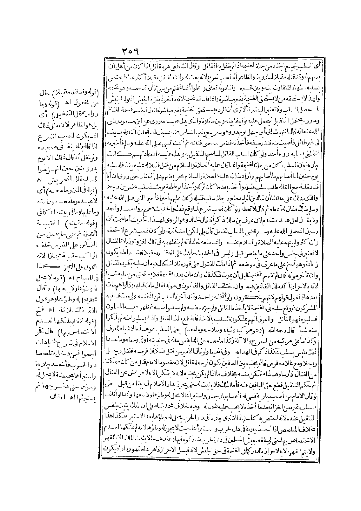 وَلَا يُقَالُ لَعَلَّ هَذَا مُتَقَدِّمٌ لِأَنَّ عَوْفَ بْنَ مَالِكٍ ذَكَرَ أَنَّهُ قَالَ لِخَالِدٍ وَهُوَ الرَّاوِي لِهَذَا الْحَدِيثِ أَمَا عَلِمْت أَنَّ رَسُولَ اللَّهِ - صَلَّى اللَّهُ عَلَيْهِ وَسَلَّمَ - قَضَى بِالسَّلَبِ لِلْقَاتِلِ قَالَ بَلَى لَكِنْ اسْتَكْثَرْته وَلَوْ كَانَ نَصْبُ شَرْعٍ لَاسْتَحَقَّهُ وَإِنْ كَثُرَ وَلَمْ يَنْهَهُ - عَلَيْهِ الصَّلَاةُ وَالسَّلَامُ - عَنْهُ وَإِنَّمَا مَنَعَهُ خَالِدٌ لِأَنَّهُ لَمْ يَنْفُلْهُمْ بِهِ فِي تِلْكَ الْغَزْوَةِ وَزِيَادَةُ الْقِتَالِ لَا تُعْتَبَرُ فِي جِنْسٍ وَاحِدٍ عَلَى مَا بَيَّنَّا مِنْ قَبْلُ وَلَيْسَ فِي الْحَدِيثِ مَا يَدُلُّ عَلَى أَنَّهُ قَتَلَهُ مُقْبِلًا فَاشْتِرَاطُهُ يَكُونُ زِيَادَةً وَهُوَ نُسِخَ عَلَى مَا عُرِفَ فِي مَوْضِعِهِ ثُمَّ إذَا مَاتَ الْمَقْتُولُ عَلَى فَوْرِهِ فَلَا إشْكَالَ فِيهِ أَنَّ سَلَبَهُ يَكُونُ لِلْقَاتِلِ وَإِنْ تَأَخَّرَ مَوْتُهُ فَإِنْ لَمْ تُقَسَّمْ الْغَنِيمَةُ قَبْلَ أَنْ يَمُوتَ فَكَذَلِكَ وَإِنْ مَاتَ بَعْدَ الْقِسْمَةِ فَلَا يَسْتَحِقُّ مِنْ سَلَبِهِ شَيْئًا لِأَنَّهُ بِالْإِحْرَازِ تَأَكَّدَ مِلْكُ الْغَانِمِينَ فِيهِ وَإِنْ اخْتَلَفَ الْقَاتِلُ وَالْغَانِمُونَ فِي مَوْتِهِ فَقَالَ مَاتَ قَبْلَهَا وَقَالُوا هُمْ مَاتَ بَعْدَهَا فَالْقَوْلُ قَوْلُهُمْ لِأَنَّهُمْ يُنْكِرُونَ وَلَوْ أَثْخَنَهُ وَاحِدٌ وَقَتَلَهُ آخَرُ فَالسَّلَبُ لِمَنْ أَثْخَنَهُ وَلَوْ مَاتَ فَسَلَبَهُ الْمُشْرِكُونَ ثُمَّ وَقَعَ سَلَبُهُ فِي الْغَنِيمَةِ لَا يَأْخُذُهُ الْقَاتِلُ وَلَوْ جَرُّوهُ نَفْسُهُ وَلَمْ يَسْلُبُوا مِنْهُ ثُمَّ ظَهَرَ عَلَيْهِ الْمُسْلِمُونَ فَسَلَبُوهُ فَهُوَ لِلْقَاتِلِ وَالْفَرْقُ أَنَّهُمْ يَمْلِكُونَ السَّلَبَ بِالْأَخْذِ فَانْقَطَعَ مِلْكُ الْقَاتِلِ وَإِذَا لَمْ يَسْلُبُوا مِنْهُ لَمْ يَمْلِكُوا مِنْهُ شَيْئًا قَالَ - رَحِمَهُ اللَّهُ -