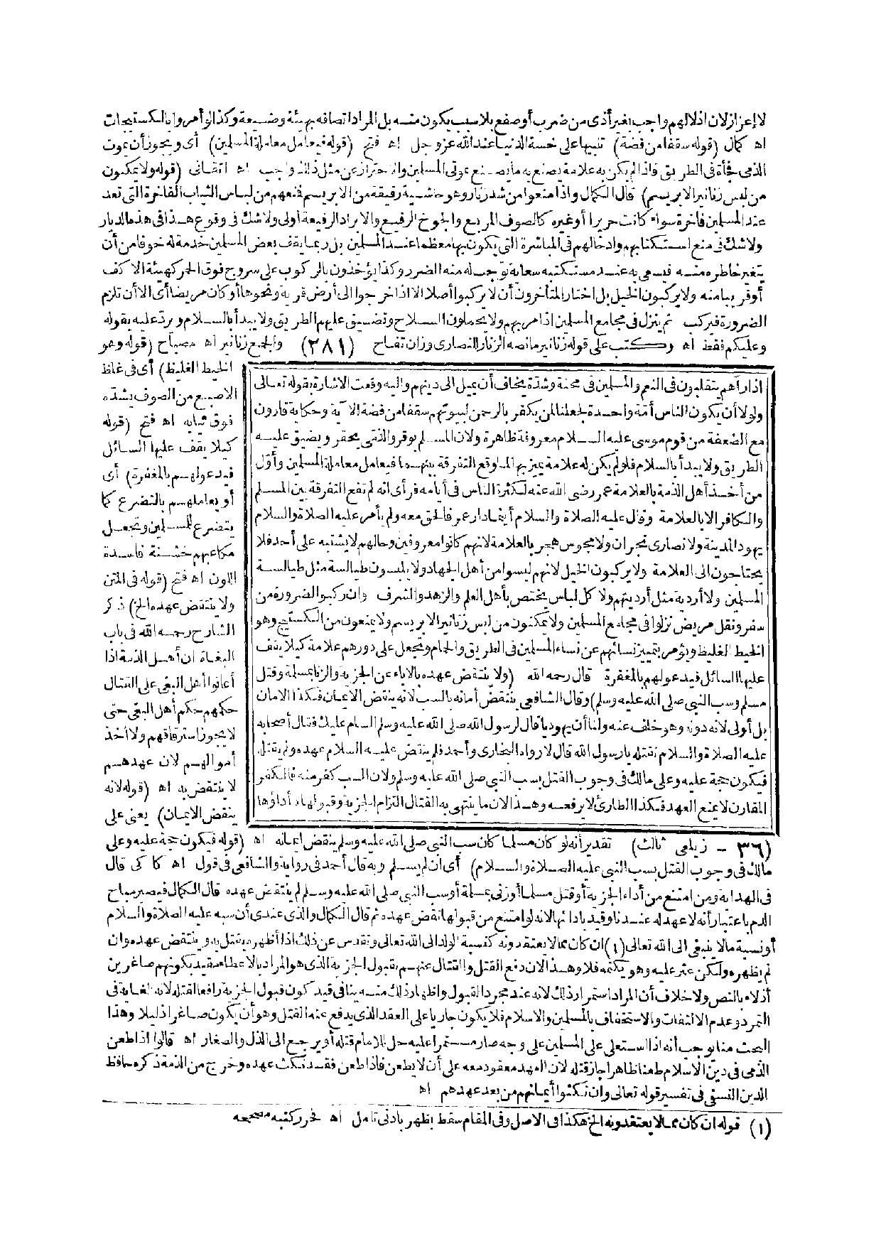 (قَوْلُهُ فِي الْمَتْنِ وَلَا يُنْتَقَضُ عَهْدُهُ إلَخْ) ذَكَرَ الشَّارِحُ - رَحِمَهُ اللَّهُ - فِي بَابِ الْبُغَاةِ أَنَّ أَهْلَ الذِّمَّةِ إذَا أَعَانُوا أَهْلَ الْبَغْيِ عَلَى الْقِتَالِ حُكْمُهُمْ حُكْمُ أَهْلِ الْبَغْيِ حَتَّى لَا يَجُوزَ اسْتِرْقَاقُهُمْ وَلَا أَخْذُ أَمْوَالِهِمْ لِأَنَّ عَهْدَهُمْ لَا يُنْتَقَضُ بِهِ. اهـ. (قَوْلُهُ لِأَنَّهُ يَنْقُضُ الْإِيمَانُ) يَعْنِي عَلَى تَقْدِيرِ أَنَّهُ لَوْ كَانَ مُسْلِمًا كَانَ سَبُّ النَّبِيِّ - صَلَّى اللَّهُ عَلَيْهِ وَسَلَّمَ - يَنْقُضُ إيمَانَهُ. اهـ. (قَوْلُهُ فَيَكُونُ حُجَّةً عَلَيْهِ وَعَلَى مَالِكٍ فِي وُجُوبِ الْقَتْلِ بِسَبِّ النَّبِيِّ - عَلَيْهِ الصَّلَاةُ وَالسَّلَامُ -) أَيْ إنْ لَمْ يُسْلِمْ وَبِهِ قَالَ أَحْمَدُ فِي رِوَايَةٍ وَالشَّافِعِيُّ فِي قَوْلٍ. اهـ. كَاكِيٌّ قَالَ فِي الْهِدَايَةِ وَمَنْ امْتَنَعَ مِنْ أَدَاءِ الْجِزْيَةِ أَوْ قَتَلَ مُسْلِمًا أَوْ زَنَى بِمُسْلِمَةٍ أَوْ سَبَّ النَّبِيَّ - صَلَّى اللَّهُ عَلَيْهِ وَسَلَّمَ - لَمْ يُنْتَقَضْ عَهْدُهُ قَالَ الْكَمَالُ فَيَصِيرُ مُبَاحَ الدَّمِ بِاعْتِبَارِ أَنَّهُ لَا عَهْدَ لَهُ عِنْدَنَا وَقَيَّدَ بِأَدَائِهَا لِأَنَّهُ لَوْ امْتَنَعَ مِنْ قَبُولِهَا نُقِضَ عَهْدُهُ ثُمَّ قَالَ الْكَمَالُ وَاَلَّذِي عِنْدِي أَنَّ سَبَّهُ - عَلَيْهِ الصَّلَاةُ وَالسَّلَامُ - أَوْ نِسْبَةُ مَا لَا يَنْبَغِي إلَى اللَّهِ تَعَالَى إنْ كَانَ مِمَّا لَا يَعْتَقِدُونَهُ كَنِسْبَةِ الْوَلَدِ إلَى اللَّهِ تَعَالَى وَتَقَدَّسَ عَنْ ذَلِكَ إذَا أَظْهَرَهُ يُقْتَلُ بِهِ وَيُنْتَقَضُ عَهْدُهُ وَإِنْ لَمْ يُظْهِرْهُ وَلَكِنْ عُثِرَ عَلَيْهِ وَهُوَ يَكْتُمُهُ فَلَا وَهَذَا لِأَنَّ دَفْعَ الْقَتْلِ وَالْقِتَالِ عَنْهُمْ بِقَبُولِ الْجِزْيَةِ الَّذِي هُوَ الْمُرَادُ بِالْإِعْطَاءِ مُقَيَّدٌ بِكَوْنِهِمْ صَاغِرِينَ أَذِلَّاءَ بِالنَّصِّ وَلَا خِلَافَ أَنَّ الْمُرَادَ اسْتِمْرَارُ ذَلِكَ لِأَنَّهُ عِنْدَ مُجَرَّدِ الْقَبُولِ وَإِظْهَارِ ذَلِكَ مِنْهُ يُنَافِي قَيْدَ كَوْنِ قَبُولِ الْجِزْيَةِ رَافِعًا لِقَتْلِهِ لِأَنَّهُ الْغَايَةُ فِي التَّمَرُّدِ وَعَدَمِ الِالْتِفَاتِ وَالِاسْتِخْفَافِ بِالْمُسْلِمِينَ وَالْإِسْلَامِ فَلَا يَكُونُ جَارِيًا عَلَى الْعَقْدِ الَّذِي يَدْفَعُ عَنْهُ الْقَتْلَ وَهُوَ أَنْ يَكُونَ صَاغِرًا ذَلِيلًا وَهَذَا الْبَحْثُ مِنَّا يُوجِبُ أَنَّهُ إذَا اسْتَعْلَى عَلَى الْمُسْلِمِينَ عَلَى وَجْهٍ صَارَ مُسْتَمِرًّا عَلَيْهِ حَلَّ لِلْإِمَامِ قَتْلُهُ أَوْ يَرْجِعُ إلَى الذُّلِّ وَالصَّغَارِ اهـ قَالُوا إذَا طَعَنَ الذِّمِّيُّ فِي دِينِ الْإِسْلَامِ طَعْنًا ظَاهِرًا جَازَ قَتْلَهُ لِأَنَّ الْعَهْدَ مَعْقُودٌ مَعَهُ عَلَى أَنْ لَا يَطْعَنَ فَإِذَا طَعَنَ فَقَدْ نَكَثَ عَهْدَهُ وَخَرَجَ مِنْ الذِّمَّةِ ذَكَرَهُ حَافِظُ الدِّينِ النَّسَفِيُّ فِي تَفْسِيرِ قَوْله تَعَالَى {وَإِنْ نَكَثُوا أَيْمَانَهُمْ مِنْ بَعْدِ عَهْدِهِمْ} [التوبة: 12]. اهـ.
