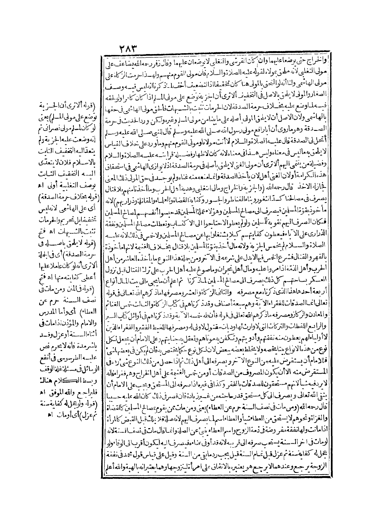 ـــــــــــــــــــــــــــــQقَوْلُهُ أَلَا تَرَى أَنَّ الْجِزْيَةَ تُوضَعُ عَلَى مَوْلَى الْمُسْلِمِ) يَعْنِي لَوْ كَانَ لِمُسْلِمٍ مَوْلًى نَصْرَانِيٌّ ثُمَّ إنَّهُ وُضِعَتْ عَلَيْهِ الْجِزْيَةُ وَلَمْ يَتَعَدَّ إلَيْهِ التَّخْفِيفُ الثَّابِتُ بِالْإِسْلَامِ فَلَأَنْ لَا يَتَعَدَّى إلَيْهِ التَّخْفِيفُ الثَّابِتُ بِوَصْفِ التَّغْلِبِيَّةِ أَوْلَى. اهـ. (قَوْلُهُ بِخِلَافِ حُرْمَةِ الصَّدَقَةِ) أَيْ عَلَى الْهَاشِمِيِّ لِأَنَّهُ لَيْسَ تَخْفِيفًا بَلْ تَحْرِيمٌ وَالْحُرُمَاتُ تَثْبُتُ بِالشُّبُهَاتِ. اهـ. فَتْحٌ (قَوْلُهُ لَا يُلْحَقُ بِأَصْلِهِ فِي حُرْمَةِ الصَّدَقَةِ) أَيْ فِي الْجُمْلَةِ أَلَا تَرَى أَنَّهُ لَوْ كَانَ عَامِلًا عَلَيْهَا أُعْطِيَ كِفَايَتَهُ مِنْهَا. اهـ. فَتْحٌ