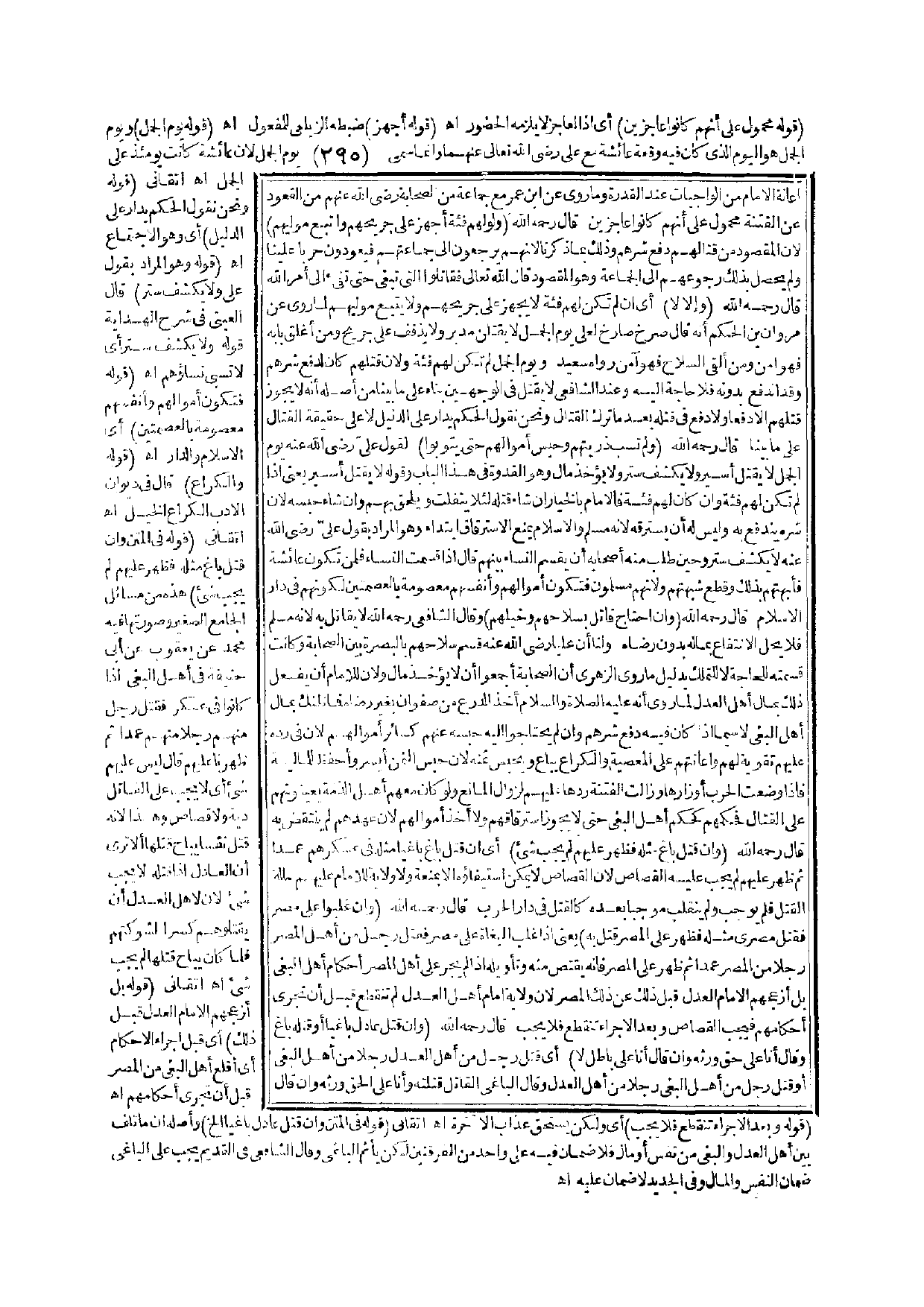(قَوْلُهُ بَلْ أَزْعَجَهُمْ الْإِمَامُ الْعَدْلُ قَبْلَ ذَلِكَ) أَيْ قَبْلَ إجْرَاءِ الْأَحْكَامِ أَيْ أَقْلَعَ أَهْلُ الْبَغْيِ مِنْ الْمِصْرِ قَبْلَ أَنْ تَجْرِيَ أَحْكَامُهُمْ. اهـ. (قَوْلُهُ وَبَعْدَ الْإِجْرَاءِ تَنْقَطِعُ فَلَا يَجِبُ) أَيْ وَلَكِنْ يَسْتَحِقُّ عَذَابَ الْآخِرَةِ. اهـ. أَتْقَانِيٌّ