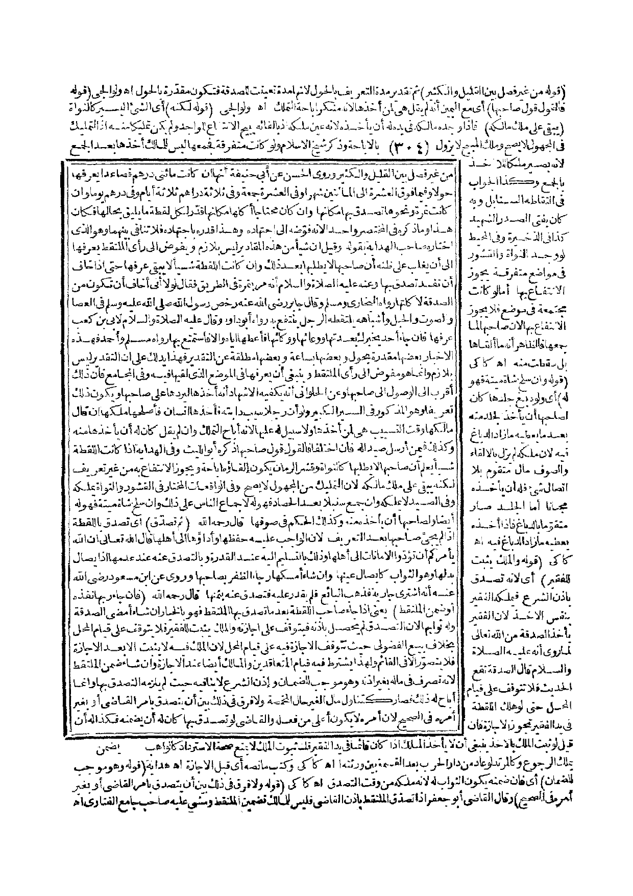 مِنْ غَيْرِ فَصْلٍ بَيْنَ الْقَلِيلِ وَالْكَثِيرِ وَرَوَى الْحَسَنُ عَنْ أَبِي حَنِيفَةَ أَنَّهَا إنْ كَانَتْ مِائَتَيْ دِرْهَمٍ فَصَاعِدًا يُعَرِّفُهَا حَوْلًا وَفِيمَا فَوْقَ الْعَشَرَةِ إلَى الْمِائَتَيْنِ شَهْرًا وَفِي الْعَشَرَةِ جُمُعَةً وَفِي ثَلَاثَةِ دَرَاهِمَ ثَلَاثَةَ أَيَّامٍ وَفِي دِرْهَمٍ يَوْمًا وَإِنْ كَانَتْ ثَمَرَةً وَنَحْوَهَا تَصَدَّقَ بِهَا مَكَانَهَا وَإِنْ كَانَ مُحْتَاجًا أَكَلَهَا مَكَانَهَا قَدَّرَ لِكُلِّ لُقَطَةٍ مَا يَلِيقُ بِحَالِهَا فَكَانَ هَذَا وَمَا ذَكَرَهُ فِي الْمُخْتَصَرِ وَاحِدًا لِأَنَّهُ فَوَّضَهُ إلَى اجْتِهَادِهِ.