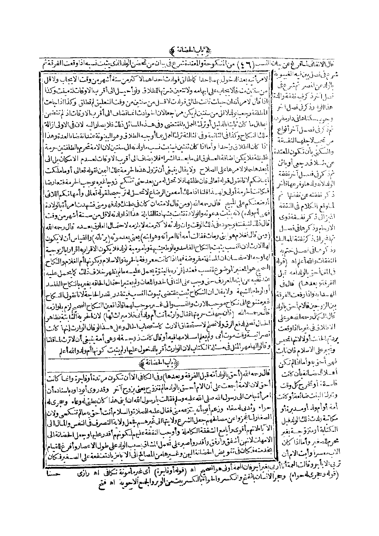 لِامْرَأَتَيْهِ بَعْدَ الدُّخُولِ بِهِمَا إحْدَاكُمَا طَالِقٌ فَوَلَدَتْ إحْدَاهُمَا لِأَكْثَرَ مِنْ سِتَّةِ أَشْهُرٍ مِنْ وَقْتِ الْإِيجَابِ، وَلِأَقَلَّ مِنْ سَنَتَيْنِ مِنْهُ فَالْإِيجَابُ عَلَى إبْهَامِهِ، وَلَا تَتَعَيَّنُ ضَرَّتُهَا لِلطَّلَاقِ وَلَوْ أُحِيلَ إلَى أَقْرَبِ الْأَوْقَاتِ لَتَعَيَّنَتْ، وَكَذَا إذَا قَالَ لِامْرَأَتِهِ إنْ حَبِلْت فَأَنْتِ طَالِقٌ فَوَلَدَتْ لِأَقَلَّ مِنْ سَنَتَيْنِ مِنْ وَقْتِ التَّعْلِيقِ لَمْ تَطْلُقْ، وَكَذَا إذَا جَاءَتْ الْمُطَلَّقَةُ رَجْعِيًّا بِوَلَدٍ لِأَقَلَّ مِنْ سَنَتَيْنِ لَمْ يَكُنْ مُرَاجِعًا لِأَنَّ الْحَوَادِثَ إنَّمَا تُضَافُ إلَى أَقْرَبِ الْأَوْقَاتِ إذَا لَمْ تَتَضَمَّنْ إبْطَالَ مَا كَانَ ثَابِتًا بِالدَّلِيلِ أَوْ تَرْكَ الْعَمَلِ بِالْمُقْتَضَى، وَفِي هَذِهِ الْمَسَائِلِ ذَلِكَ فَلَا يُصَارُ إلَيْهِ لِأَنَّ فِي الْأُولَى إزَالَةَ مِلْكِ النِّكَاحِ، وَكَذَا فِي الثَّانِيَةِ، وَفِي الثَّالِثَةِ تَرْكُ الْعَمَلِ بِمَا أَوْجَبَهُ الطَّلَاقُ، وَهُوَ الْبَيْنُونَةُ عِنْدَ انْقِضَاءِ الْعِدَّةِ، وَهَذَا إذَا كَانَ الطَّلَاقُ وَاحِدًا